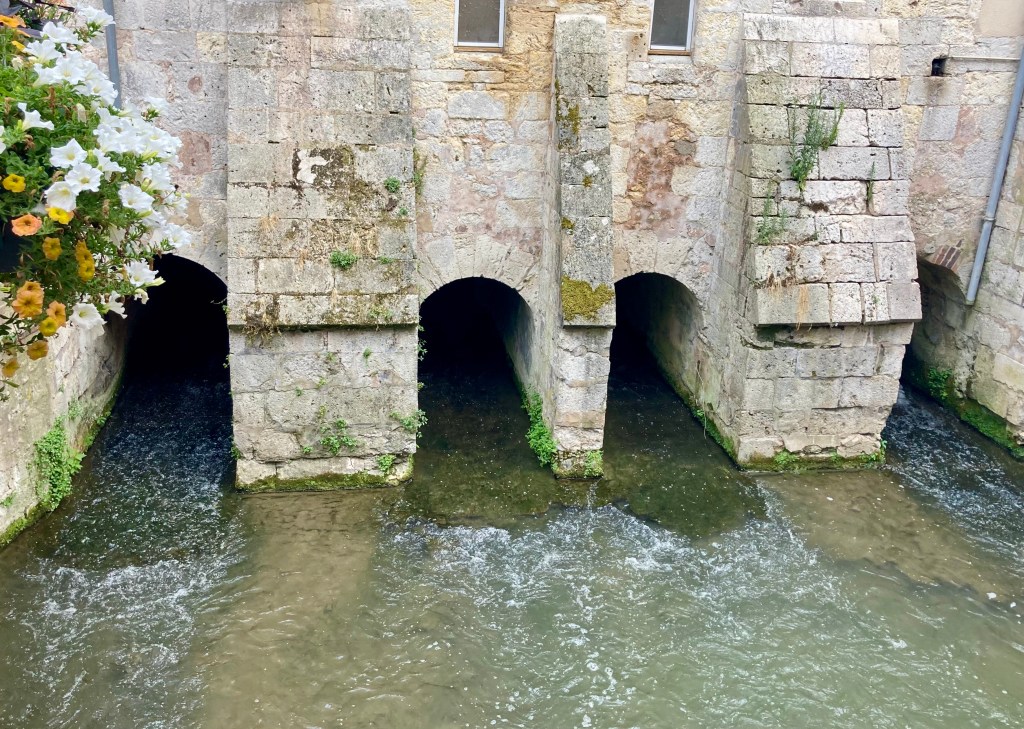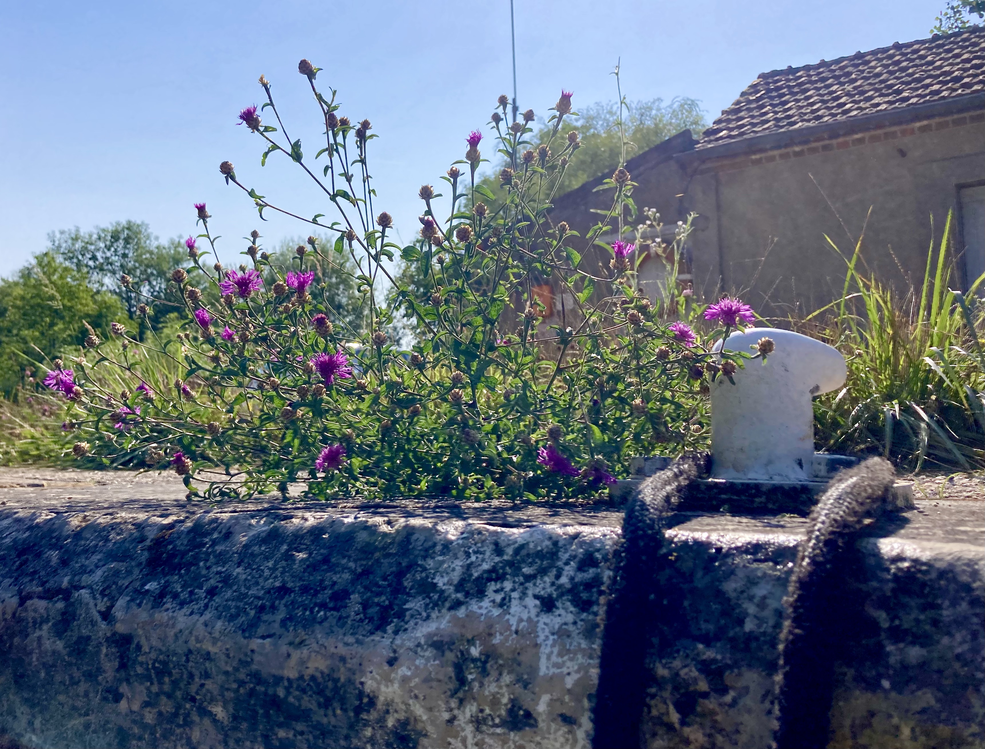 I amused myself with a photo of Calliope seemingly on the roof of the lavoir, combining two of my favourite things. (Not sure these would work in Julie Andrew’s song!) At the same time it does show the relationship of the canal to the river here in Montbouy.