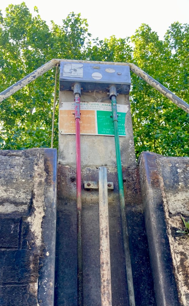 On this canal we had green poles to set the lock operation going – other times it is a blue pole, or even a blue rope.