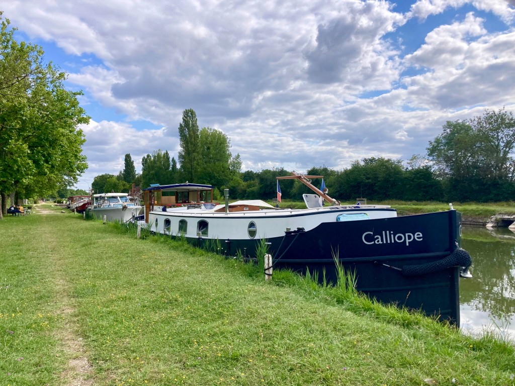 Montbouy had a couple of surprises for us. We were quickly moored up under a shady line of trees, and pleased that there were no hotel barges due that day to use the same space.