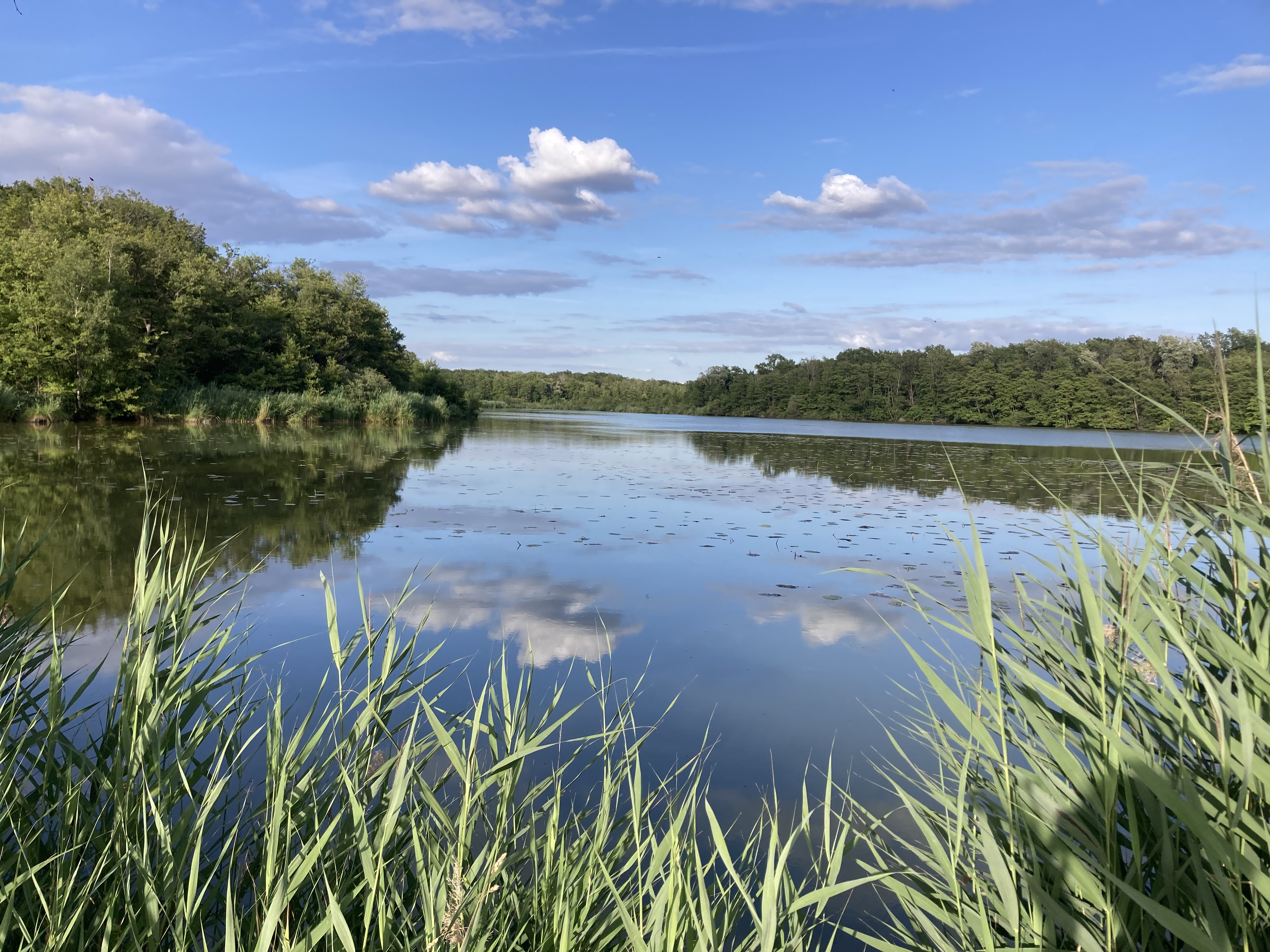 Then the étang (lake) – no houses to photograph up here; just the water and the sky.