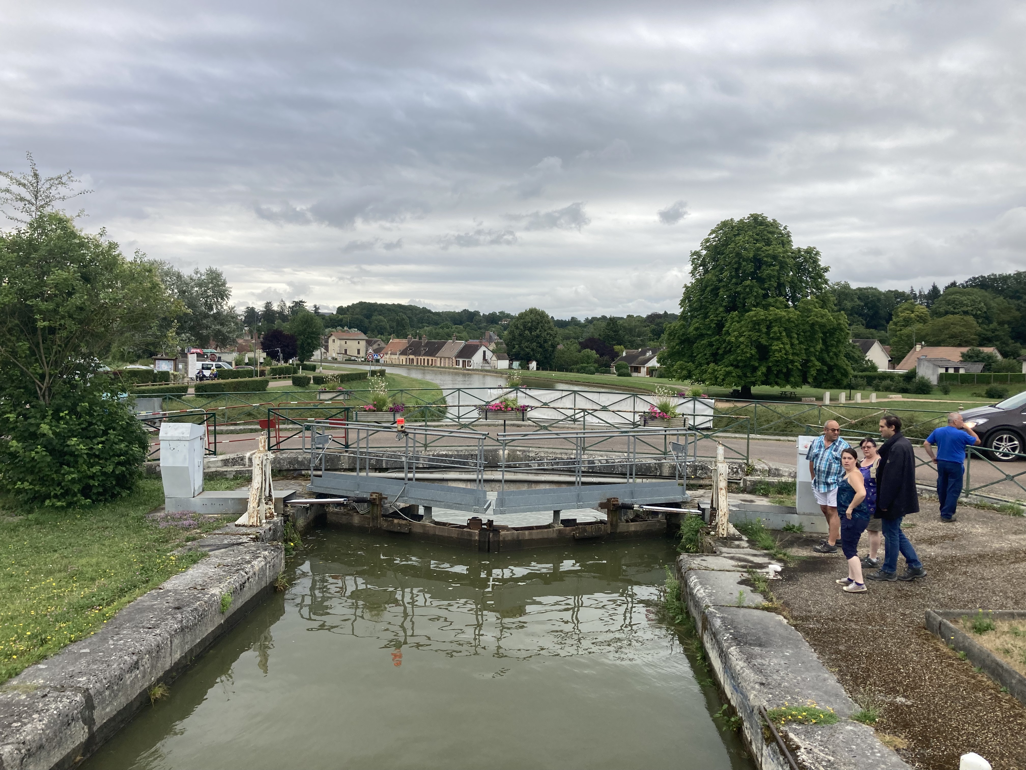 At the edge of Chatillon is a lock that is not allowed to be automated because of its old manually operated lift bridge. The lock keeper was keen to show us how it operated, so here is a short video of him, on the left, in action. As he walked back onto the bridge it gently closed of it’s own volition, aided by well greased joints and gravity.