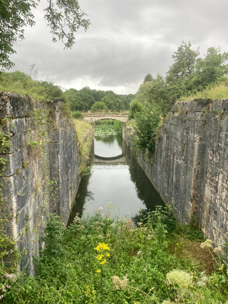 Less than half a kilometre further is Moulin-Brûlé lock where it is possible to see the overgrown vestiges of the ‘ancient échelle du Moulin-Brulé’ – the old staircase lock of Moulin Brûlé.