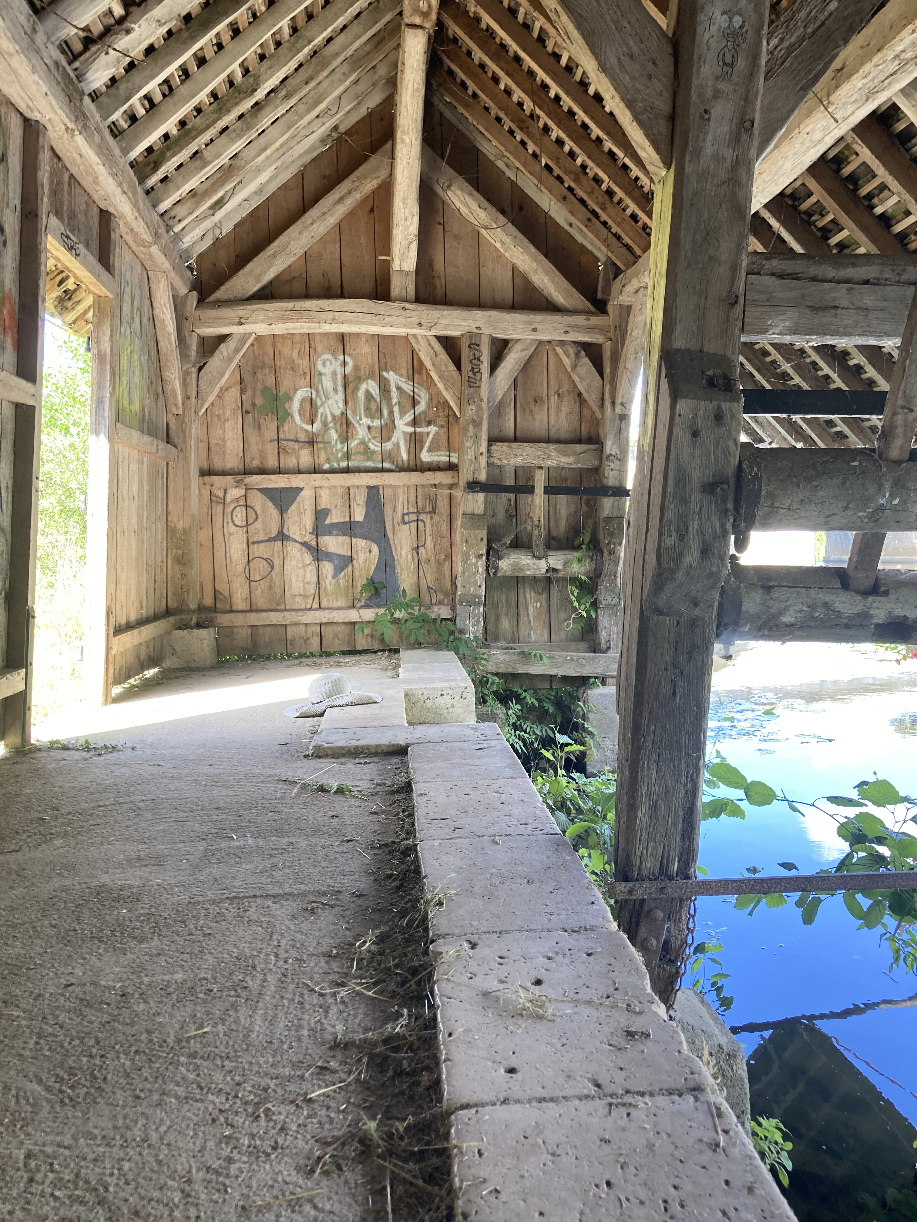 Yes, another lavoir; skip this if you are not a lavoir lover! This one had something I have never seen before – two interesting wooden contraptions that Stewart thinks might be some kind of mangle to squeeze the worst of the water out of the washing.