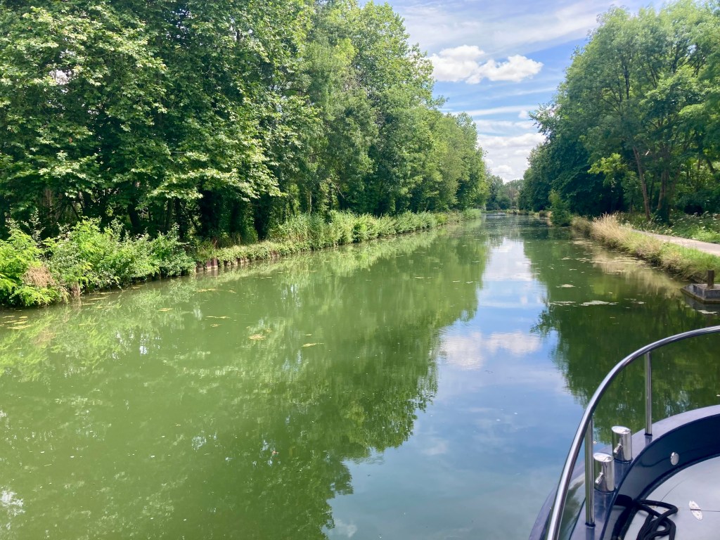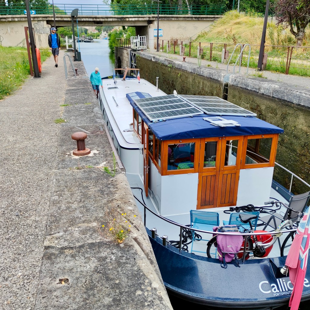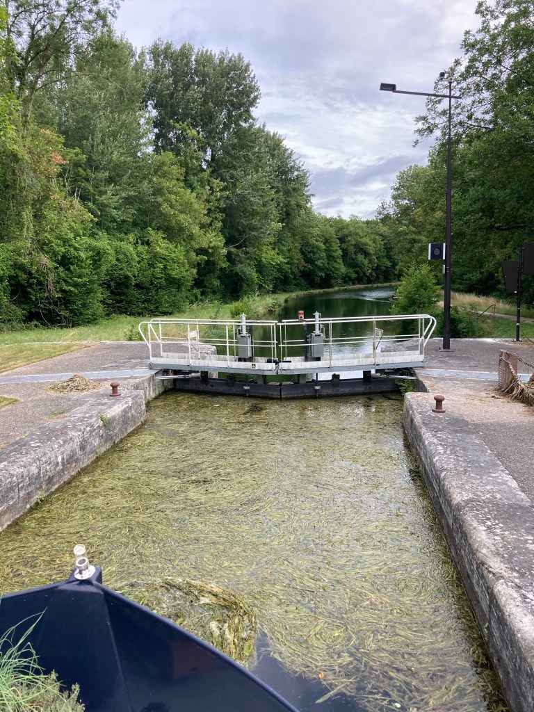 In the morning we were off through écluse 2 after a leisurely breakfast, using our zapper to choose our own departure time. With the lovely éclusiers we have to decide the day before what time we will leave, and let them know, so this measure of independence is valued. Of course we can still only move during the day’s lock opening times, normally around 0800 to 1800, but varies from canal to canal.