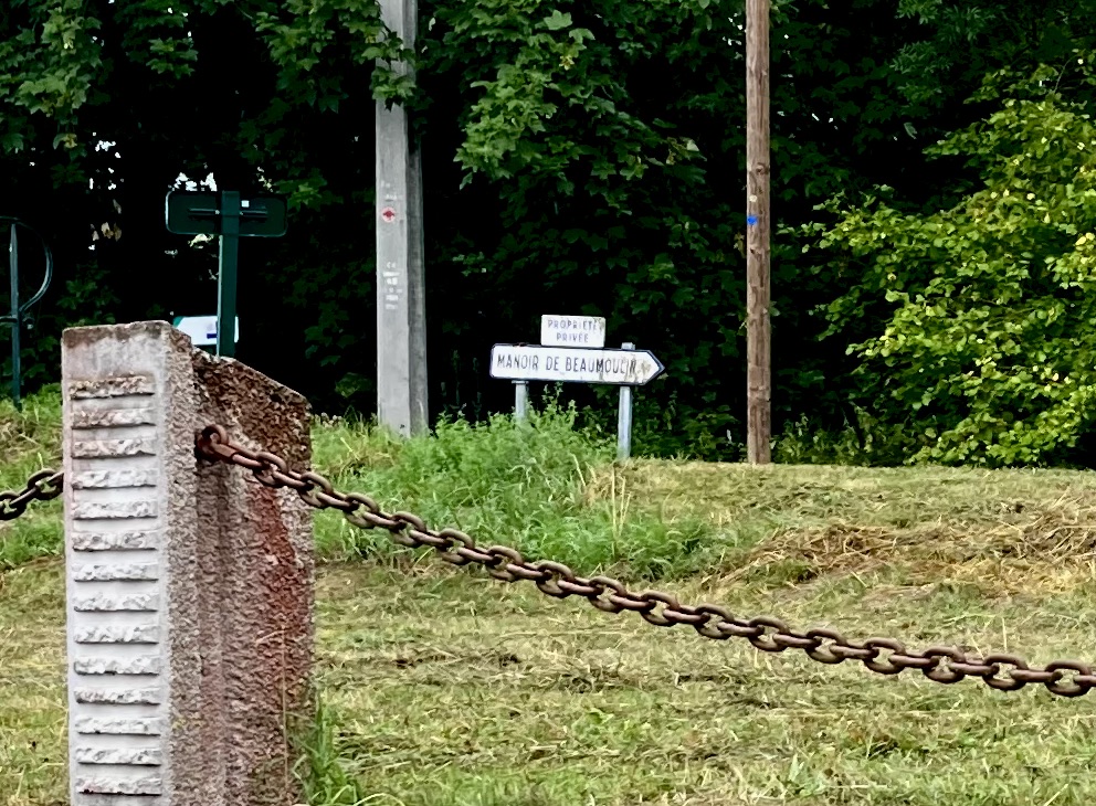 Just after the bridge there was a signpost to ‘Manoir de Beaumoulin’ on a private drive.