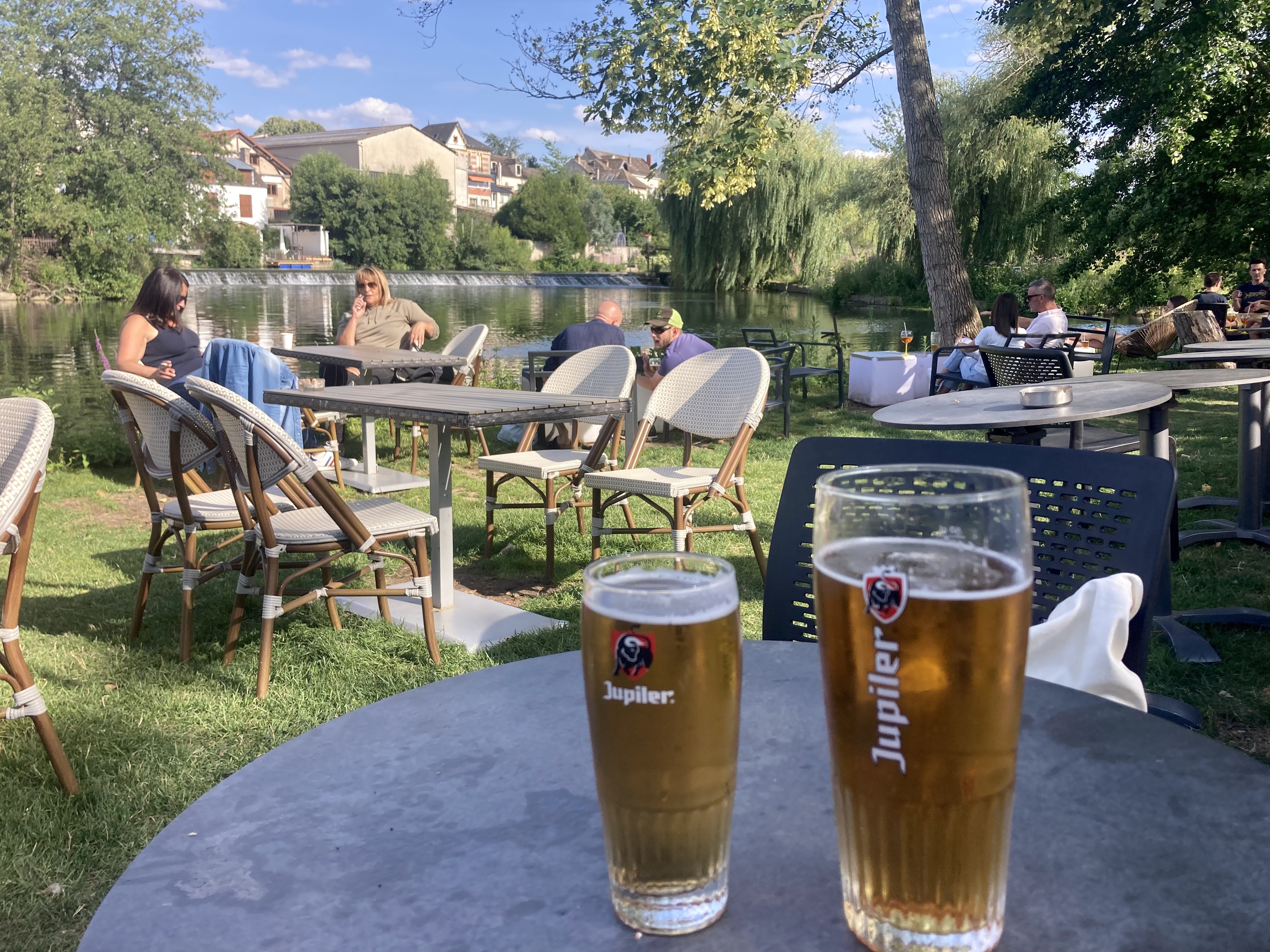 After a beer on the grassy banks we explored the food offerings and settled on a freshly made savoury galette each, with a glass of local wine.