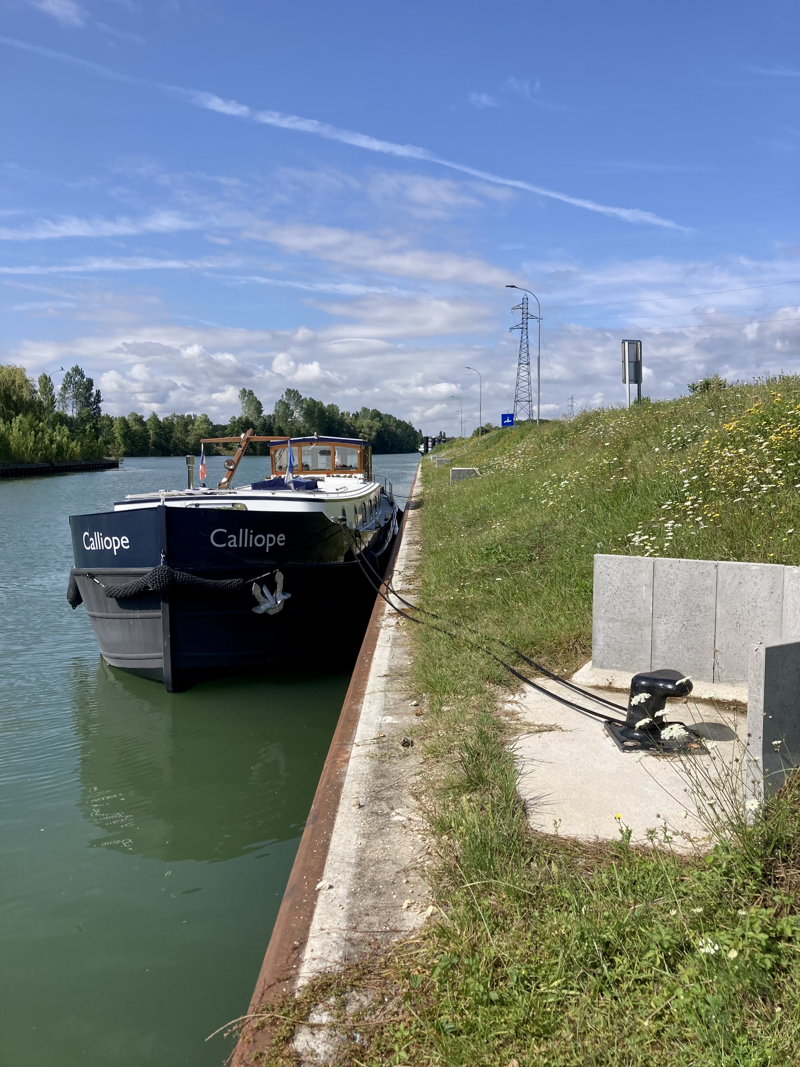 By now we were in Nemours where we planned to stay for 2 nights. There are three moorings listed for Nemours in the DBA Waterways Guide (Dutch Barge Association). We thought that the first one we would reach would suit Calliope best.