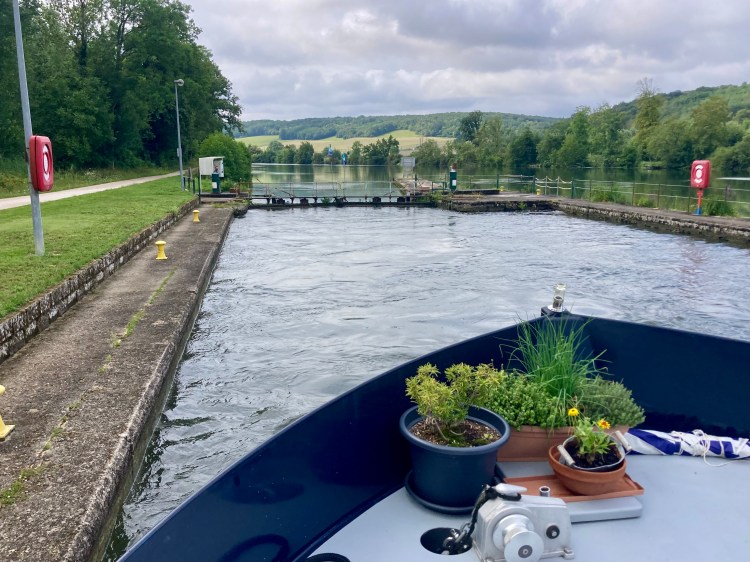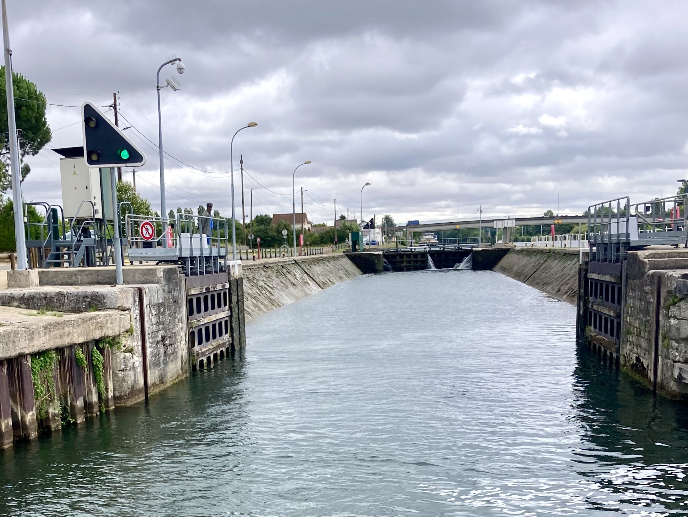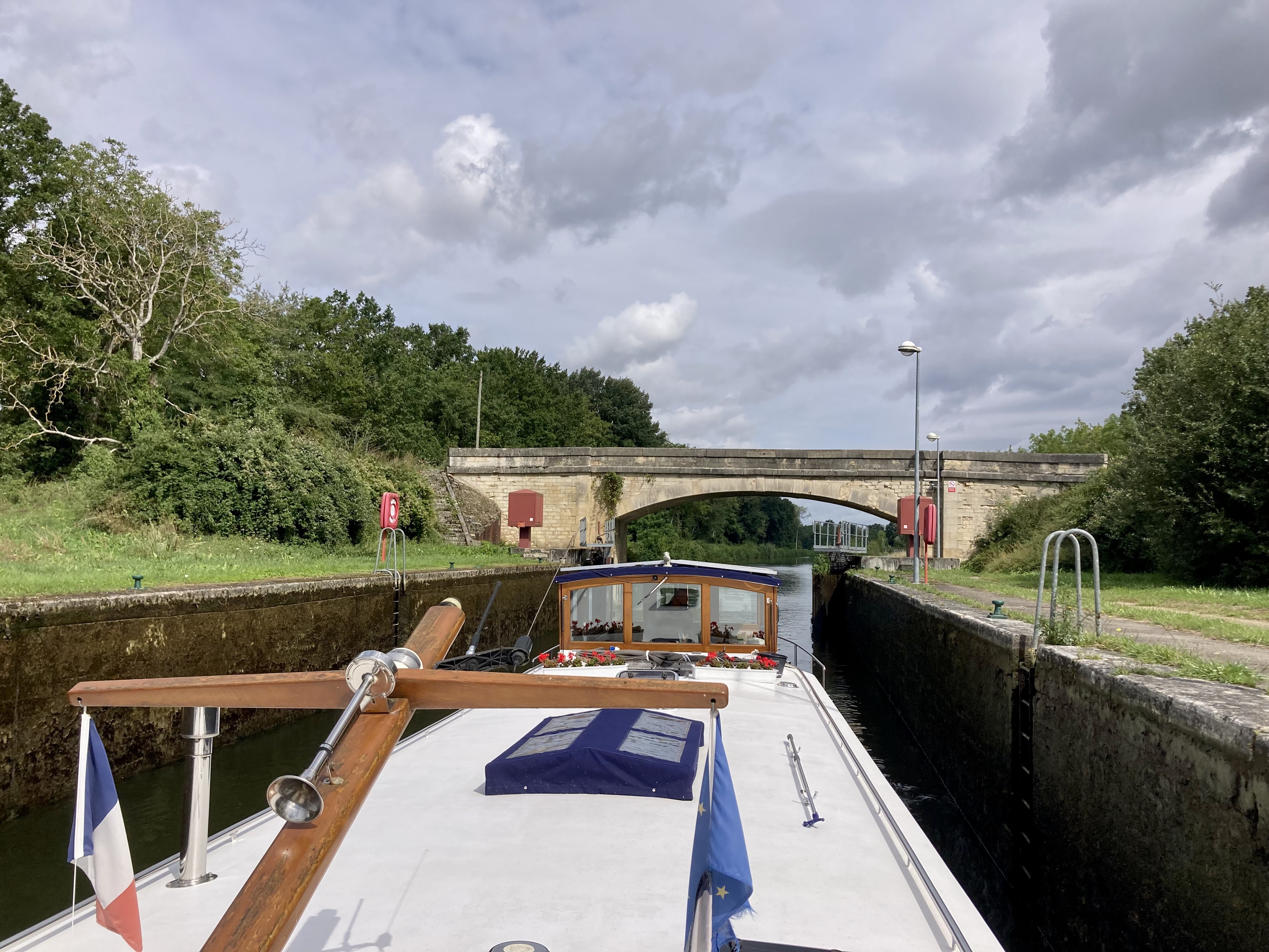 A few boats came down through the lock at 1400, and then it was our turn to go ‘montant’ (up) with another small cruiser that, like us, had been waiting its turn.