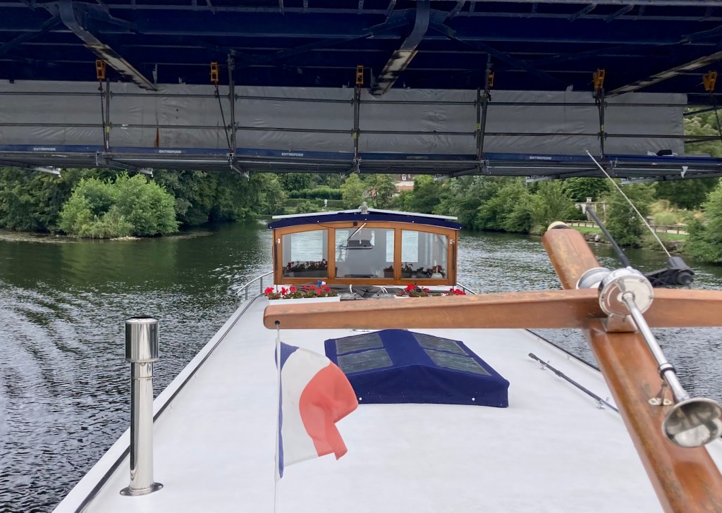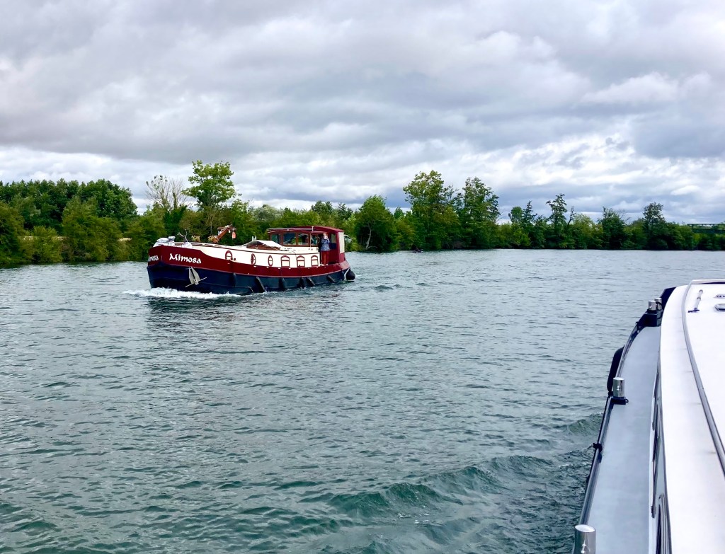 As we continued up the Yonne we received messages that there would be ‘passing Pipers’. Friends on other Piper boats were on their way downstream and we were able to shout joyful hellos across the water as they went by.