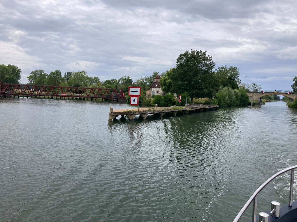Within a few minutes we passed the entrance to the Canal de Bourgogne – our way ‘home’ in a month’s time. But for now we were passing the Migennes junction by.