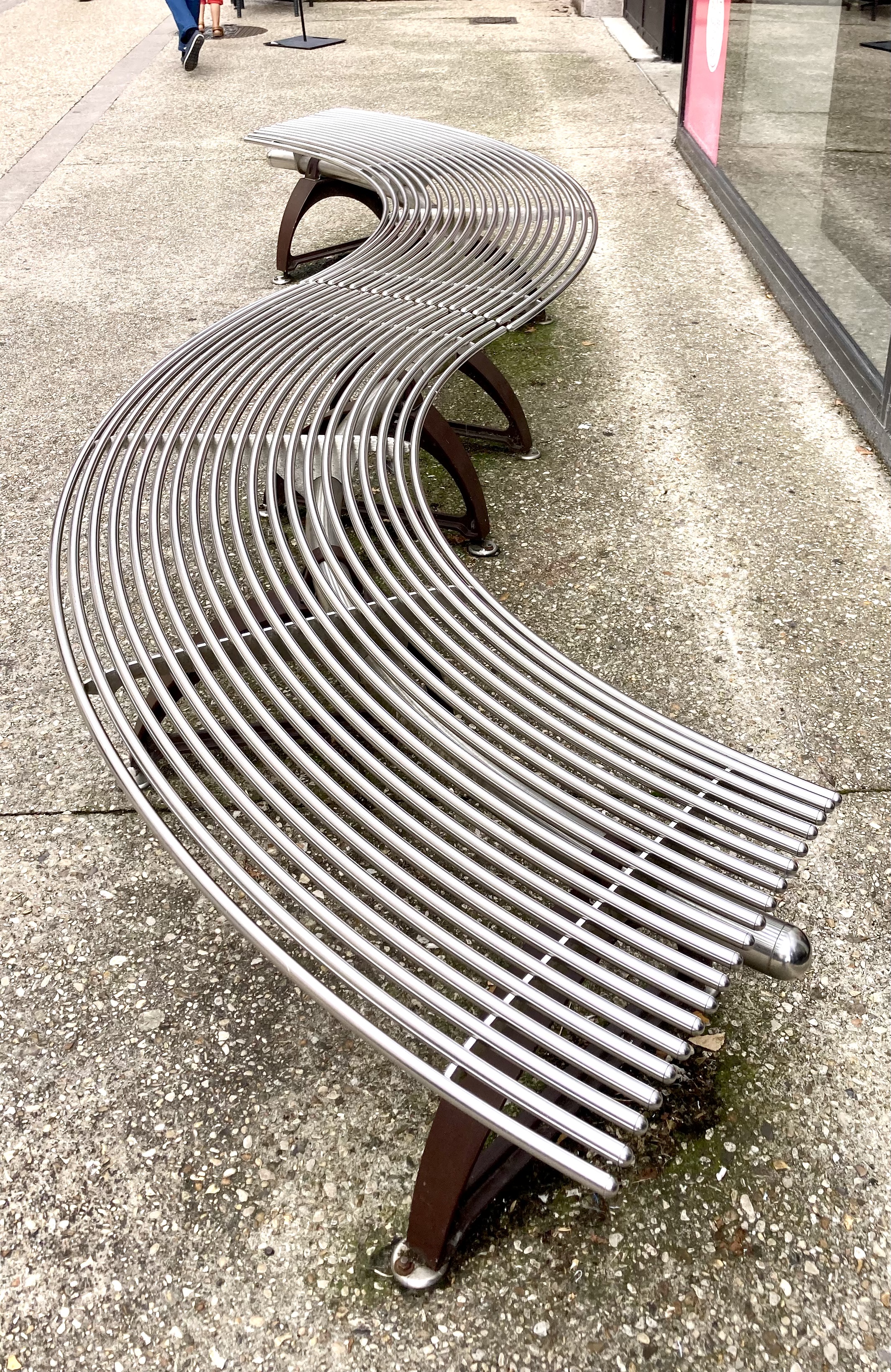 The cathedral is a Gothic style building from the 12th century; the town hall is early twentieth century, and there are examples from every century in-between. And probably the wavy steel bench brings us up to date.