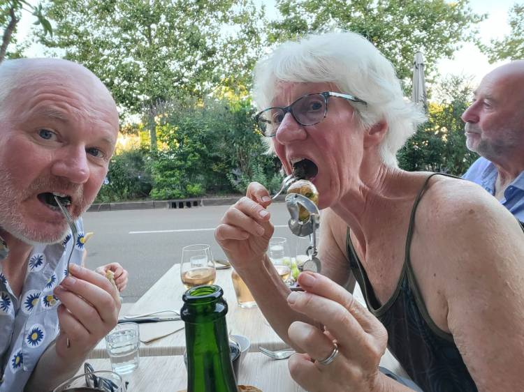 By the time I had returned with my bag of food and drink goodies we had been joined by my brother Phil and sister-in-law Geraldine. They were on their way through France to enjoy a holiday further south but managed to catch up with us on the way.