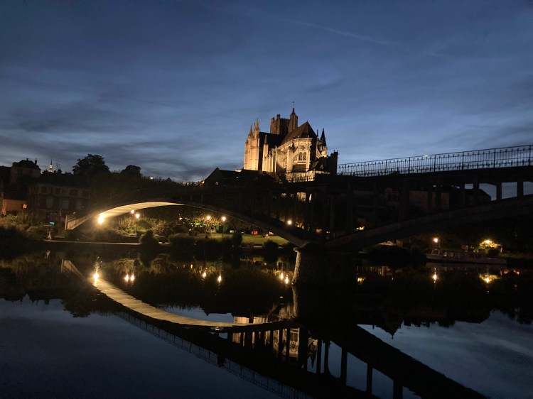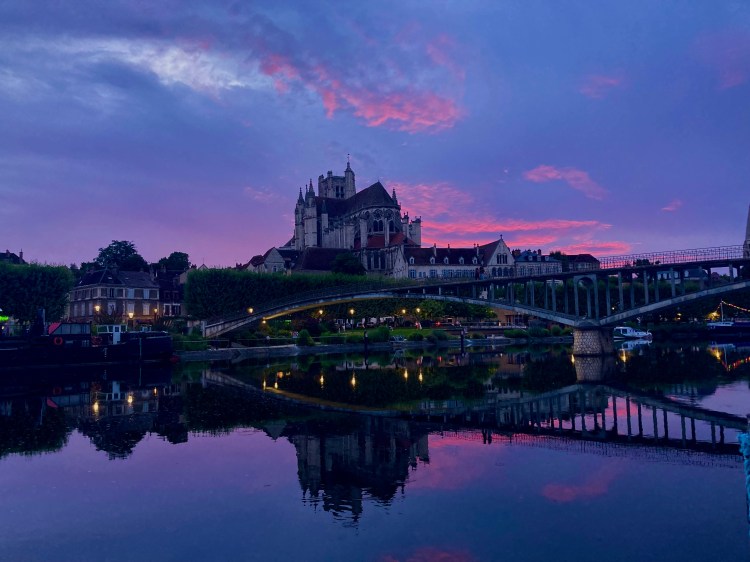 We spent a couple of days shopping, tiny bits of maintenance, and generally making ourselves at home aboard again before we set off. Our last evening was set against a final superb Auxerre backdrop.