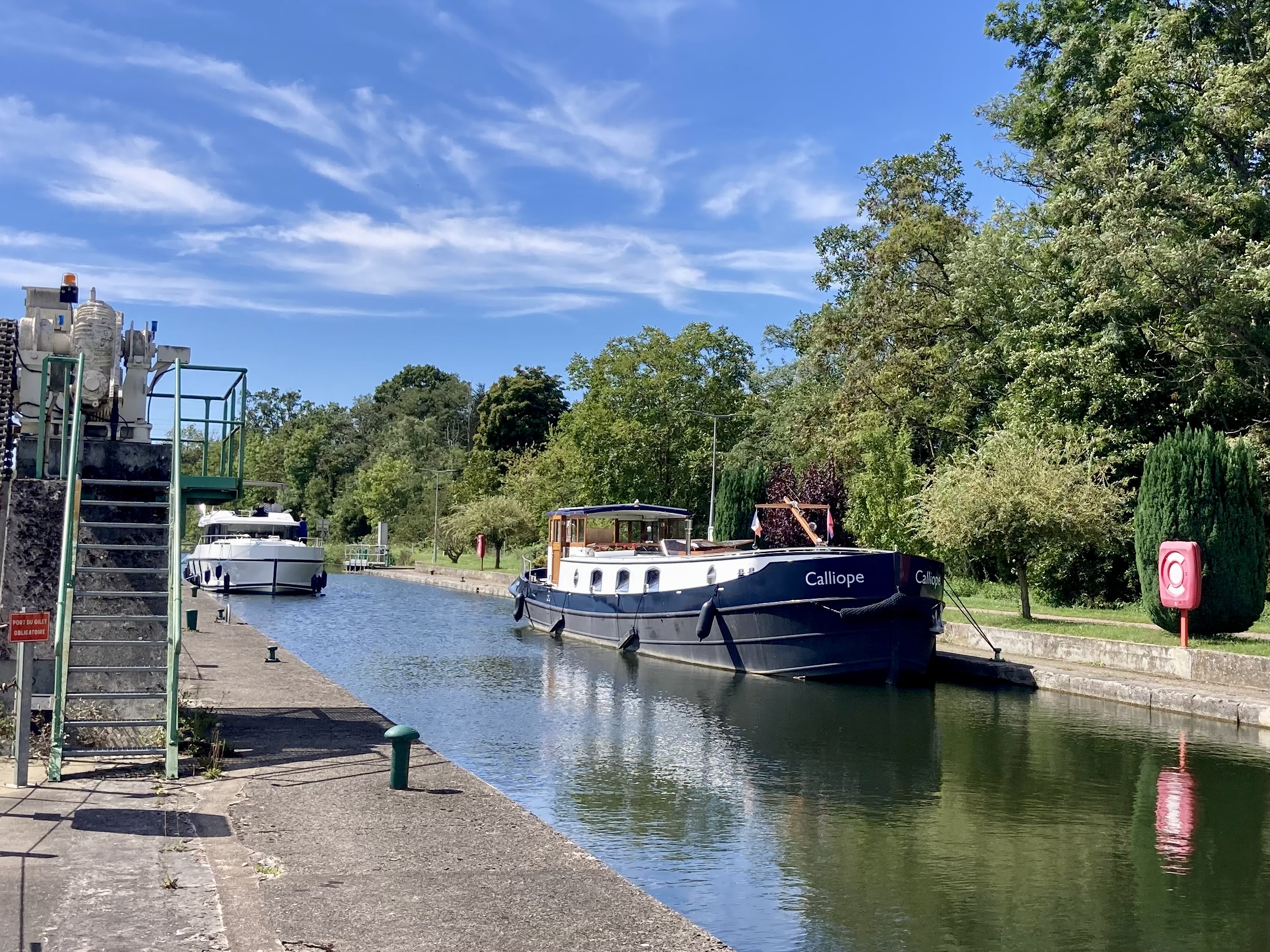 Then Calliope got going too, a kilometre back upstream to the turn off for the Canal. The story of the Bourgogne cruise will be in the next blog!