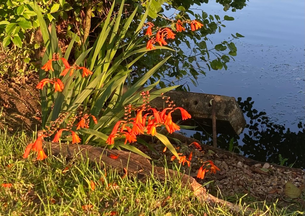 A walk around the area in the cool of the evening surprised me with some bright flowers by the river and by an old lavoir.