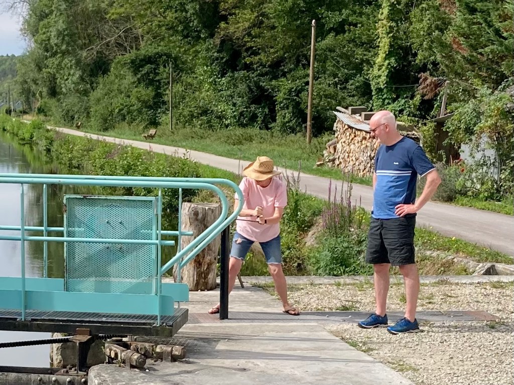 Theresa and Ashley soon found out that at manual locks it is a good idea to help the éclusiers. They both got stuck in, jumping, or climbing, ashore to open or close the lock doors.