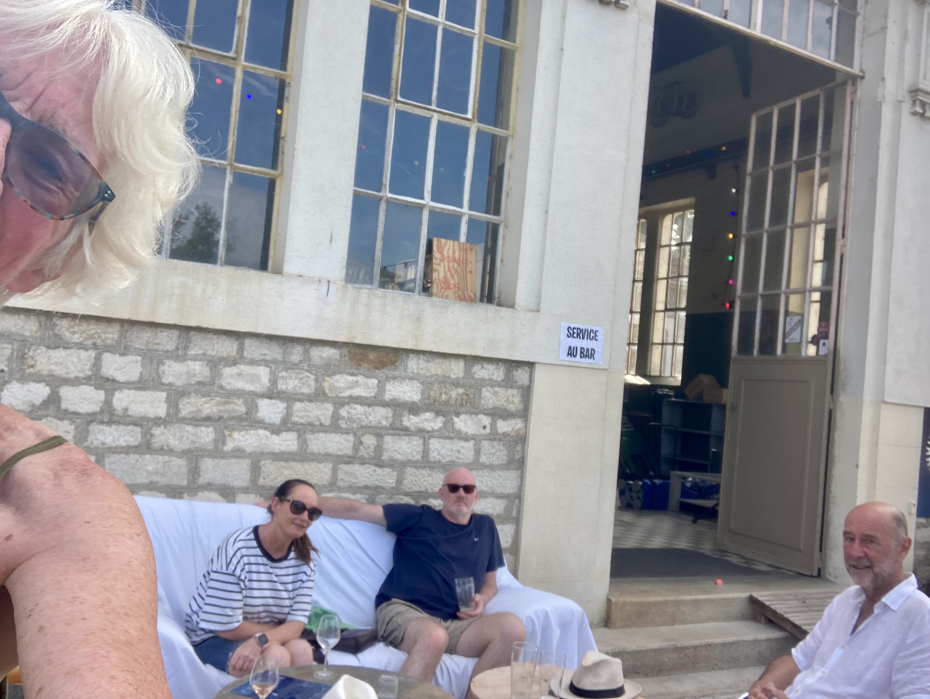 Not only was it by the park; it was also close to the old pumping house, now part a funky bar and part a bike hire business. So cue one of my worst ever selfies style photos of the four of us outside having an early apero!