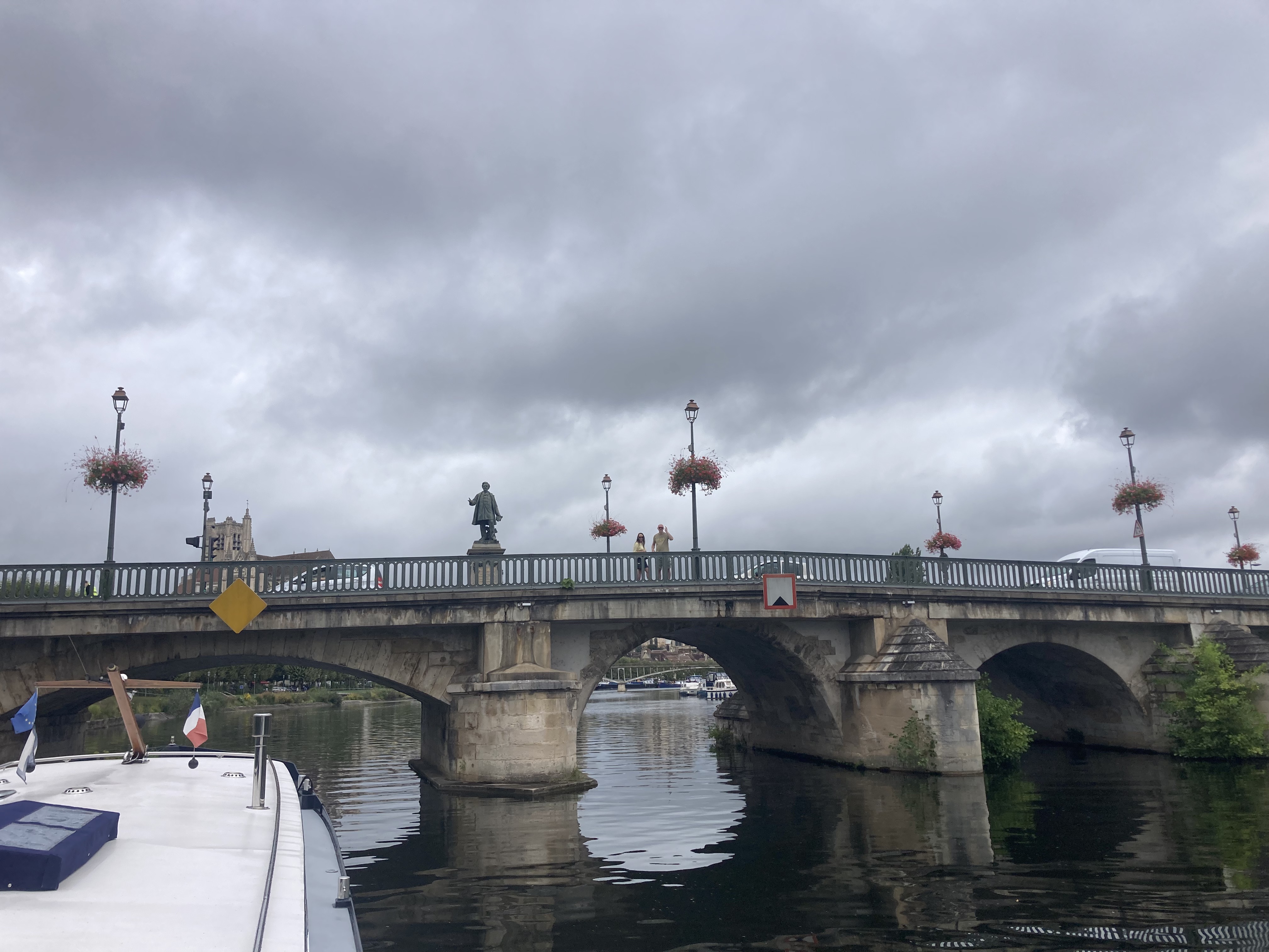 The following morning, under grey skies, we took Calliope through the last lock off the Nivernais, back onto the Yonne, under Pont Paul Bert (with his statue at the centre), under Ashley and Theresa to Paul’s right, and onto our mooring at Auxerre marina.