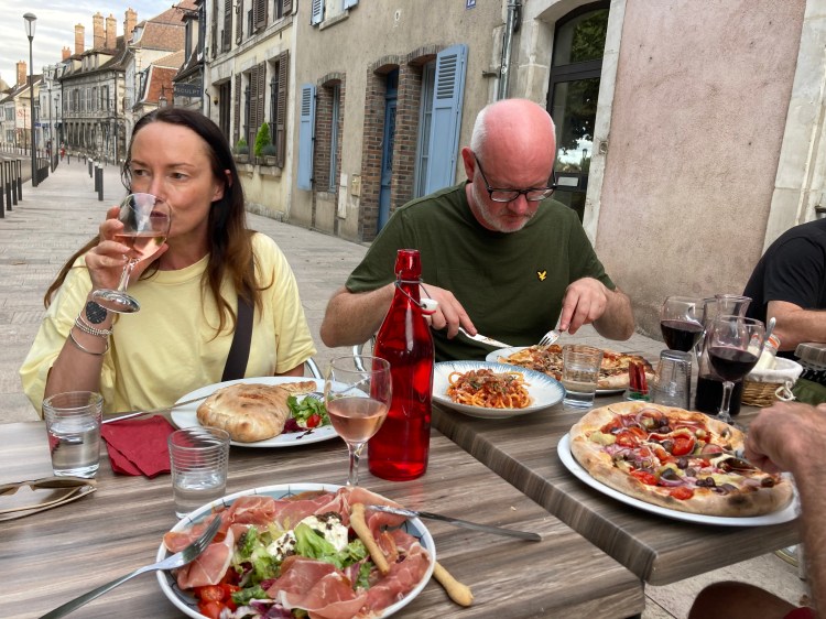 Our time on the Yonne seems long, but there is a break in the middle for us to return to the UK for a few weeks. During our first two and a half weeks we had two sets of family visitors – my brother and his wife for a couple of days, and then our son and partner for a few more. It always adds an extra dynamic when we have visitors – there is a tendency to see new things and eat out more, as you will see below.