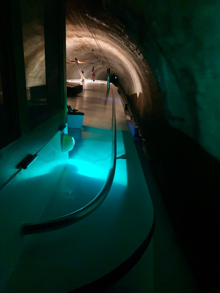 You cannot see it here, but every 100m there is a marker telling you how far through the tunnel you are; this is what musty be reported to the éclusier, by radio, every five minutes.