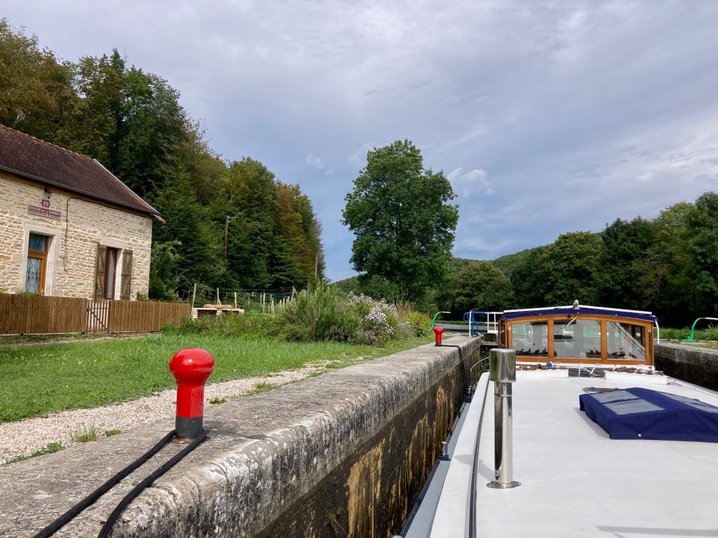 By our usual (on this canal) start time of 9.15 we were arriving at écluse 42S de Fleurey with its pretty little lock house – no longer an éclusier’s home I feel.