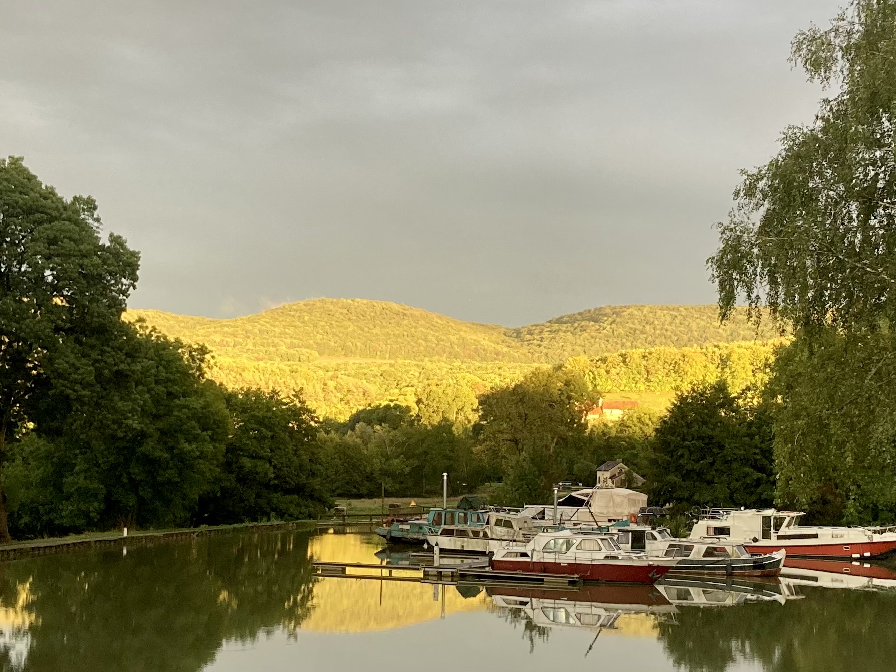 the journey from Plombières was so short that we arrived in time to moor up and look on line for a local restaurant with a menu du jour at a good price.