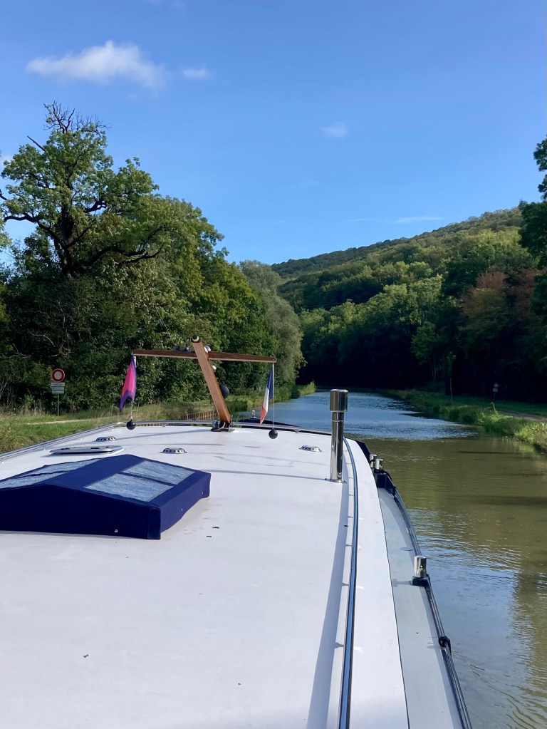 The was ahead was blue and green with hills sloping down into the Ouche valley as we glided along.