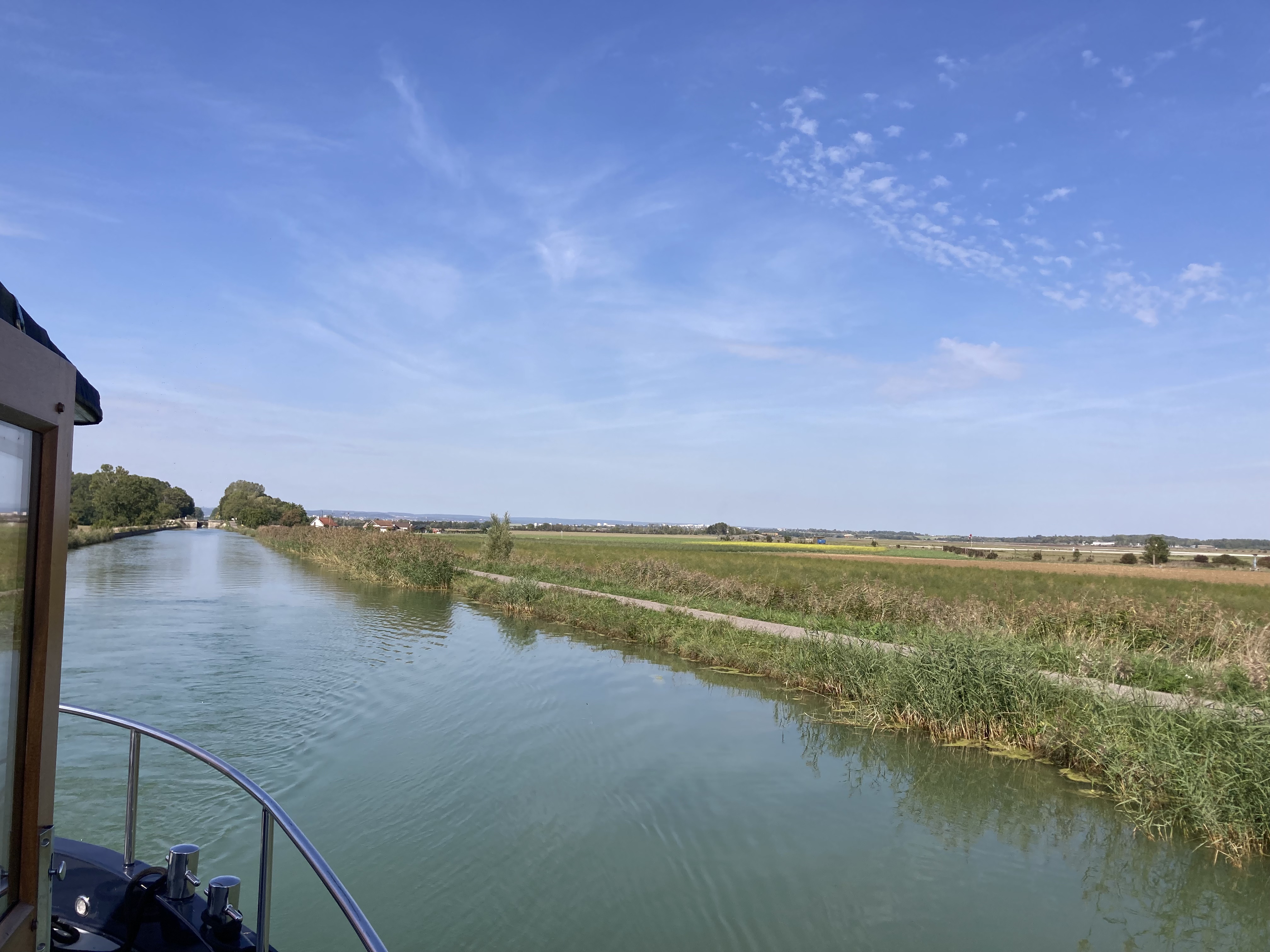 These flat plains allowed the waterway to be cut directly from the Saône at Saint Jean to Losne through to Dijon. No need to deviate round mountains here, though we are still dropping down this ultra wide valley – an additional xxx