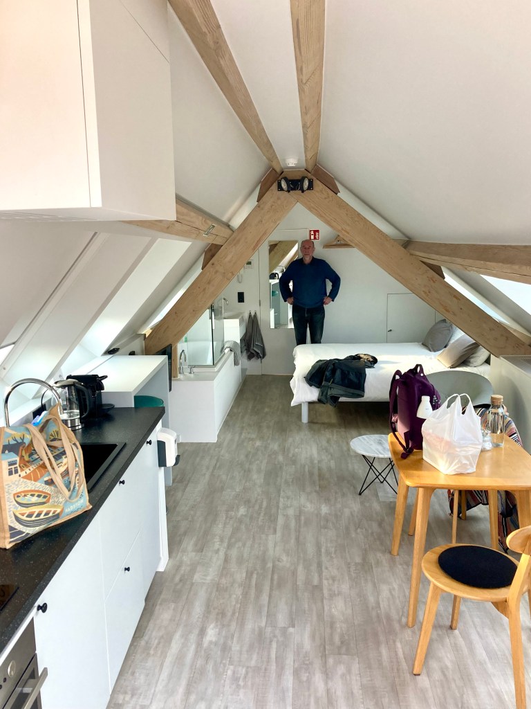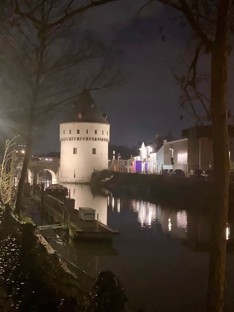 We booked into a rather marvellous studio apartment with roof top views – Homely – in case you need a place to stay in Kortrijk. Then a great start to the evening aboard Pavot with our great friends, out to their choice of a good fritteur, and a walk home with the UNESCO World heritage Site Broel towers lit up just for us (not!).