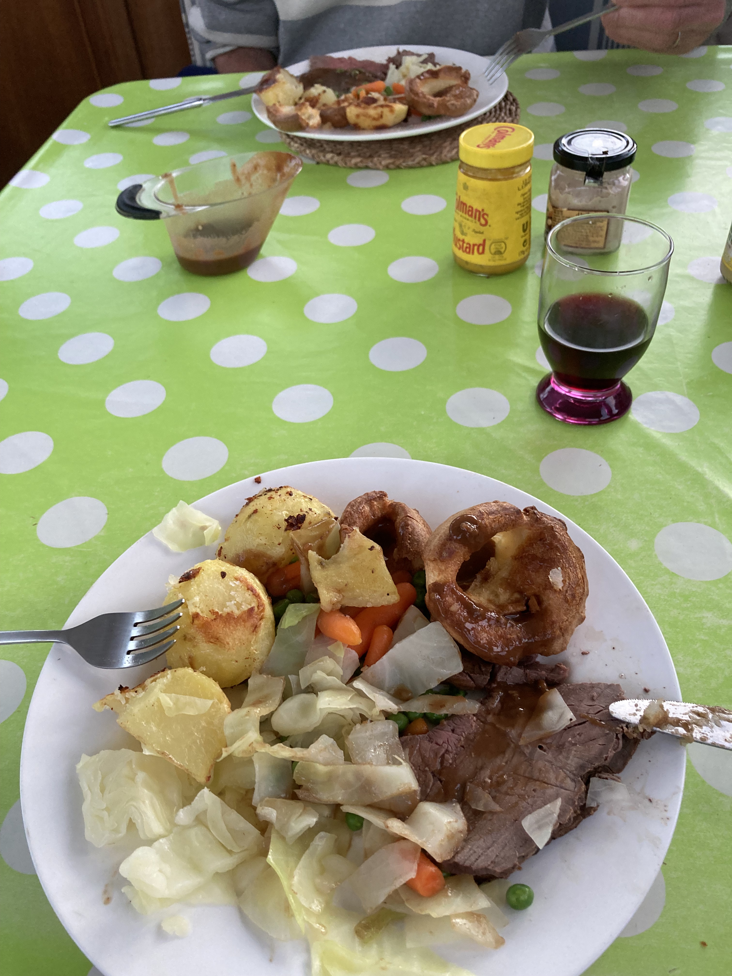 By the time we got to Sunday the wind had changed and suddenly it was ten degrees colder – and more like the expected temperature for March! I got on with oiling all the wood in the wheelhouse – it’s well worth the effort. Then we cooked a Sunday treat – good British Roast Beef Dinner, complete with Yorkshire puds. Yum yum.