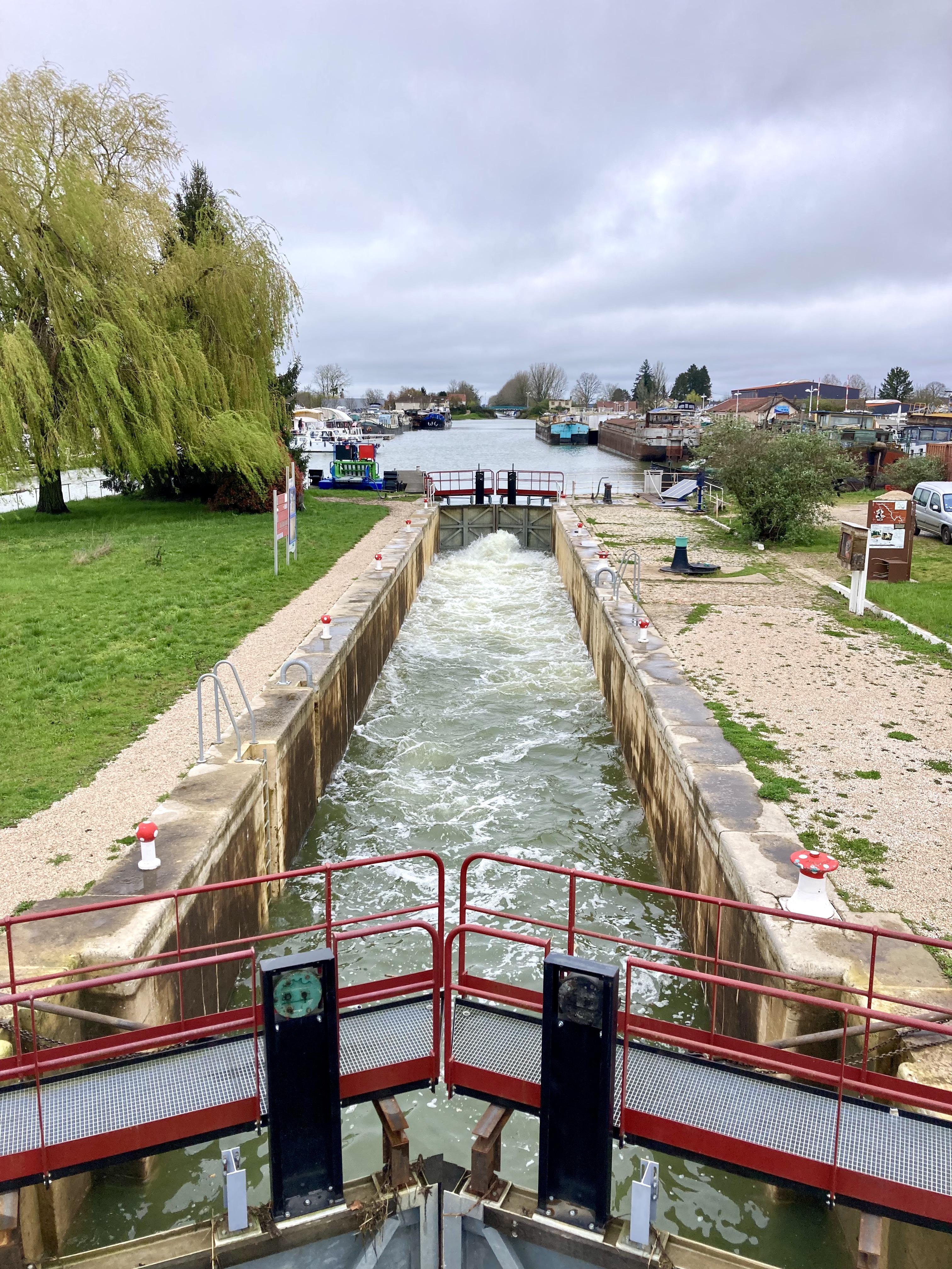 The lock was closed to traffic as it was being used to help manage the water levels in the Canal de Bourgogne, allowing water to escape at a great rate from the canal into the river, night and day.
