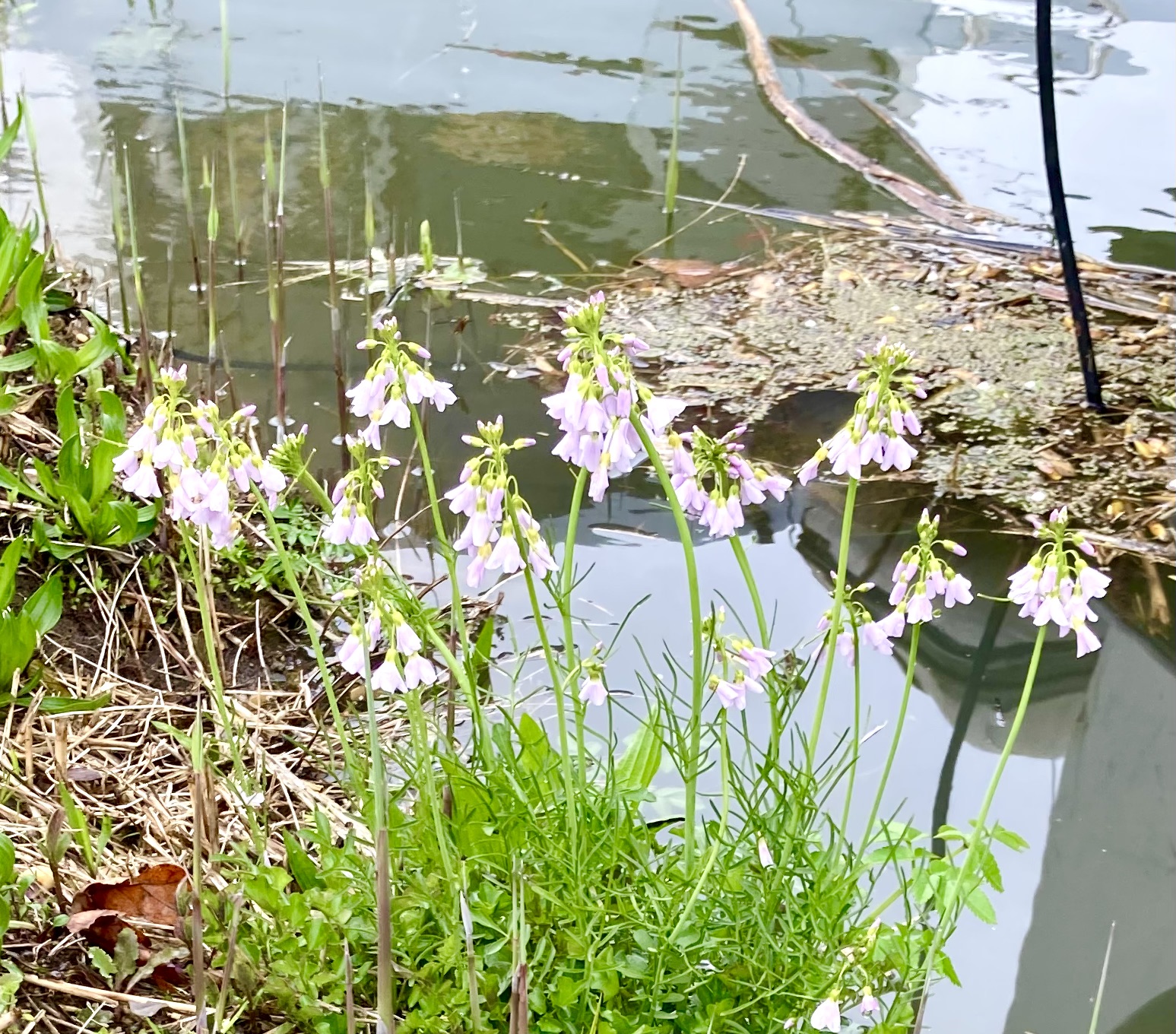 I took the opportunity to walk right round the basin and get a photo of Calliope from the far side – and a photo of some nice pale pink Spring flowers that were growing at the edge of the water. To be honest I don’t know what they are!