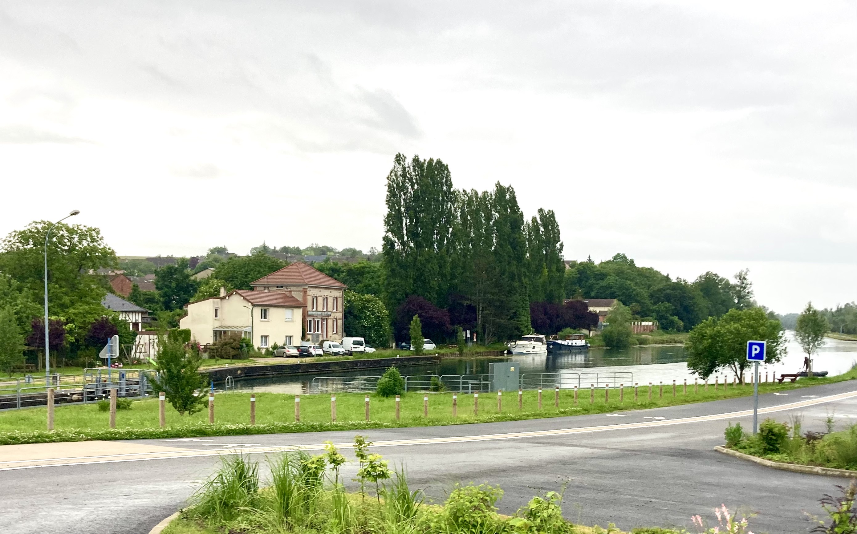 The first kilometre and a half is part of a ‘ring road’ round Vitry. It was a necessary build; modern barges could not navigate the original winding canal that went into the centre of the town.