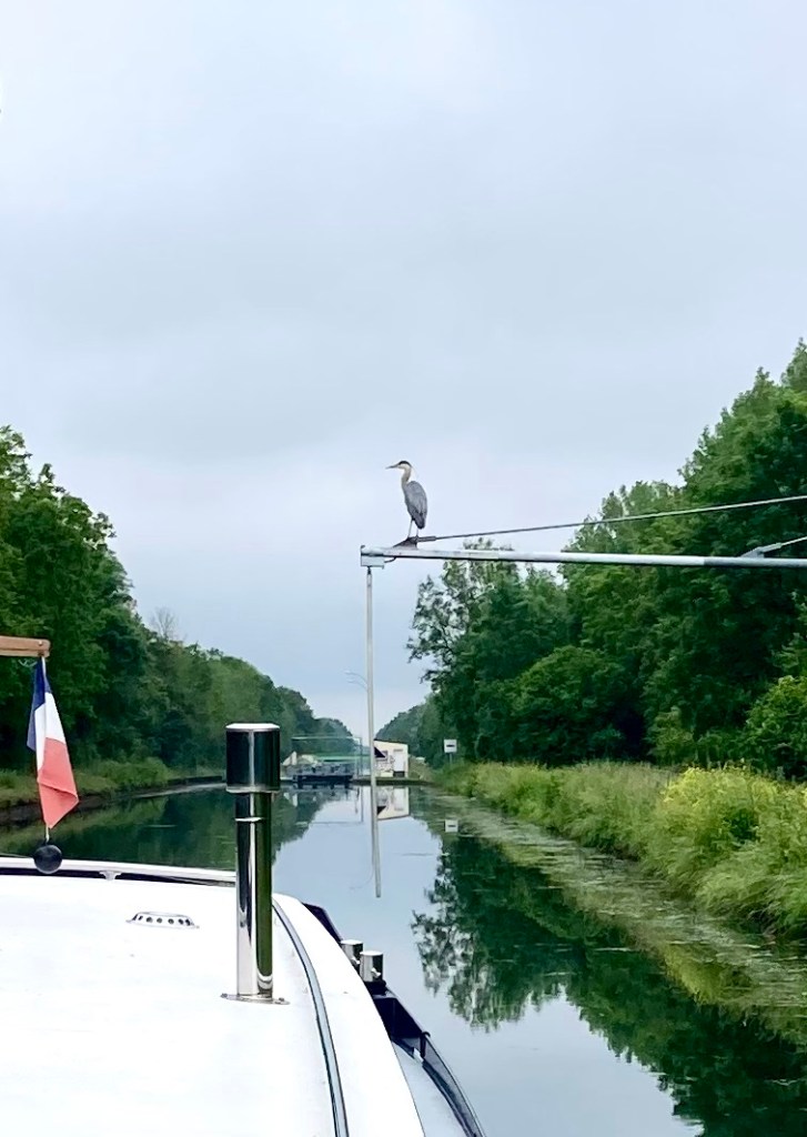 And a heron who decided to supervise us turning the pole for one of the locks.