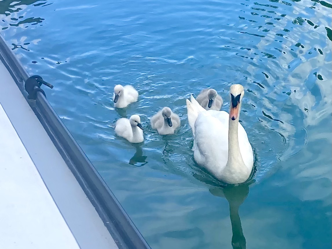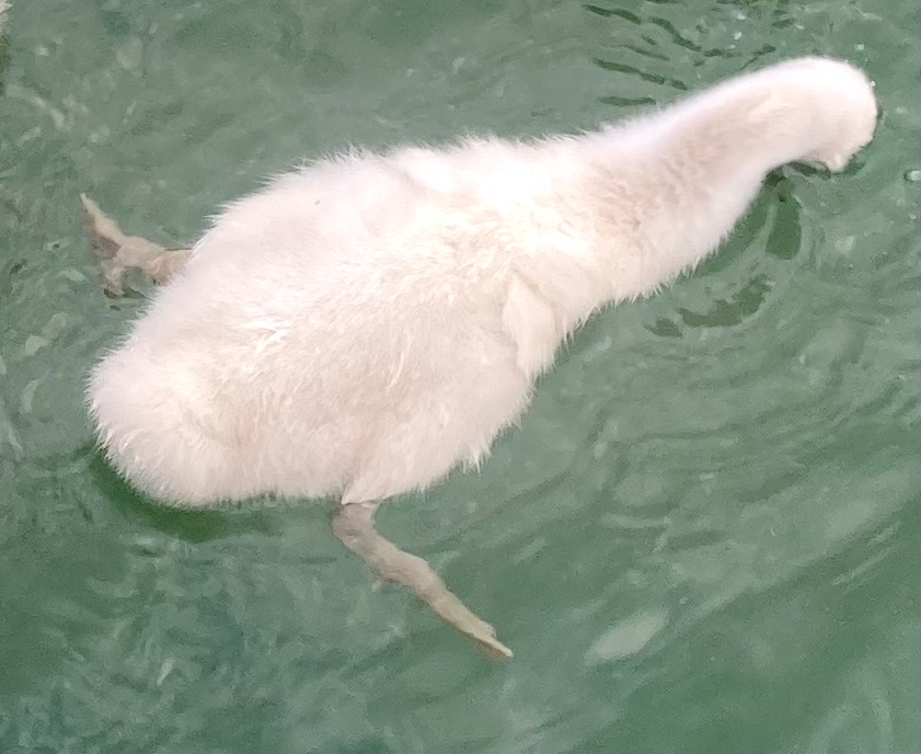 Then there were the swans with their four very young cygnets. They were paraded before us every day, and sometimes we had something suitable le to feed them with.