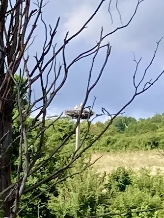 Yes, I promise you that this rather blurred photo is of two storks on their nest at the top of a pole.