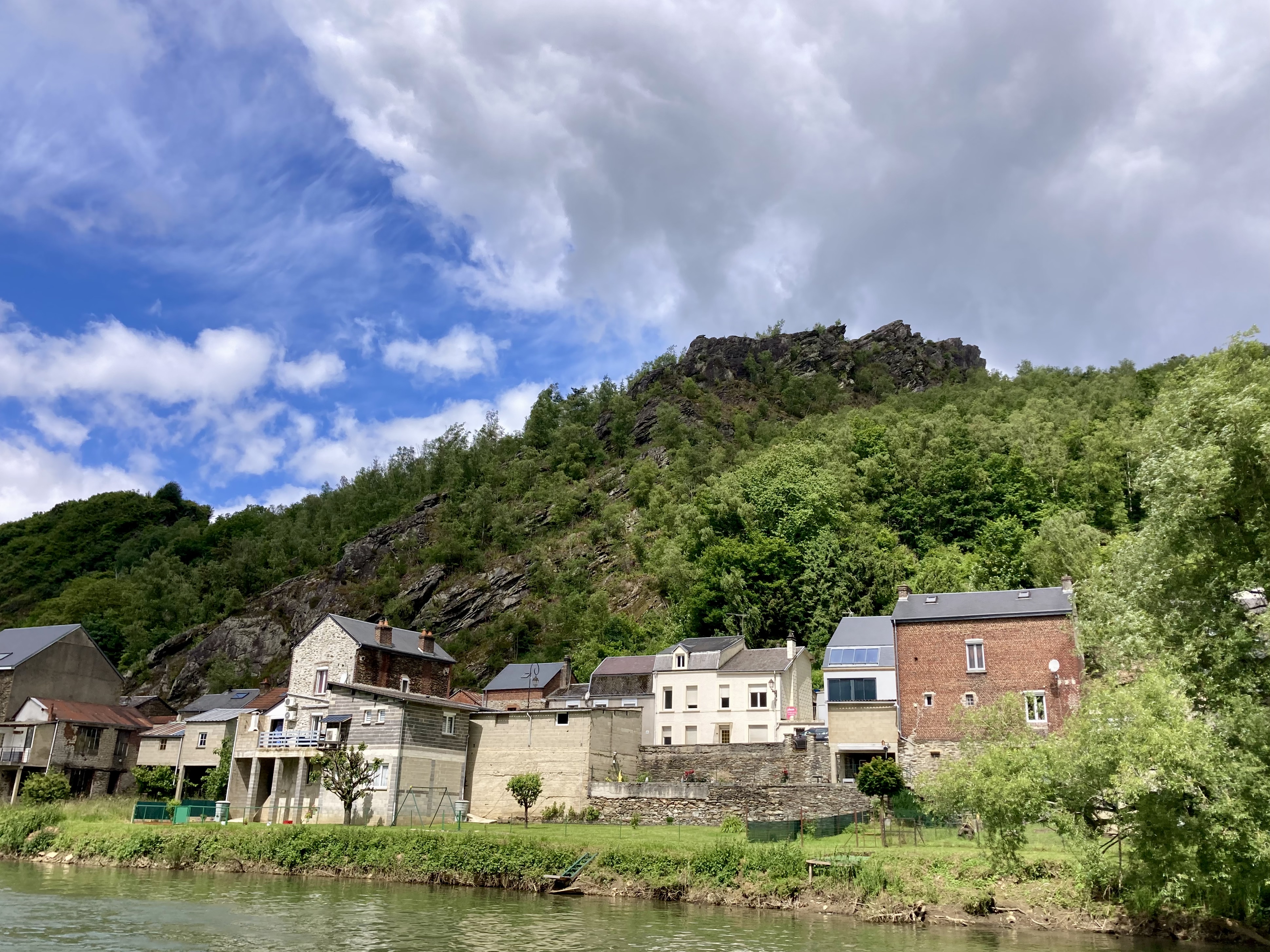 Soon after Monthermé is the old village of Laifour, dwarfed beneath the strangely named hill tops of Les Dames de Meuse. Legend tells that three adulterous wives were turned into these huge rocks, and forever stare down at the river below.