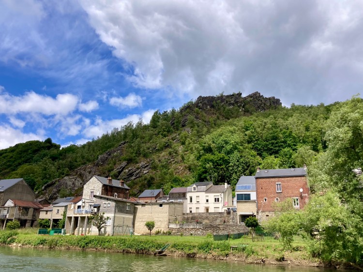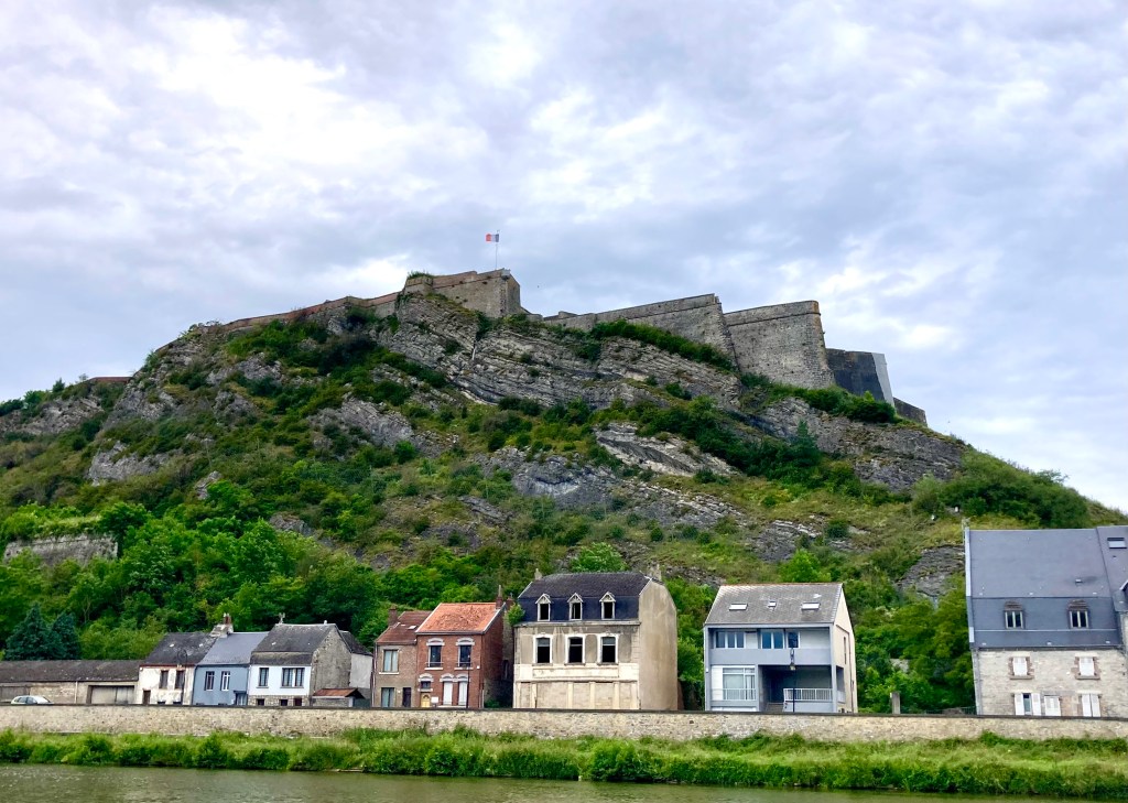 Dropping back onto the river here takes you round a wide curve with a fortress above – the Citadelle de Charlemont – which in its day controlled the Meuse valley.