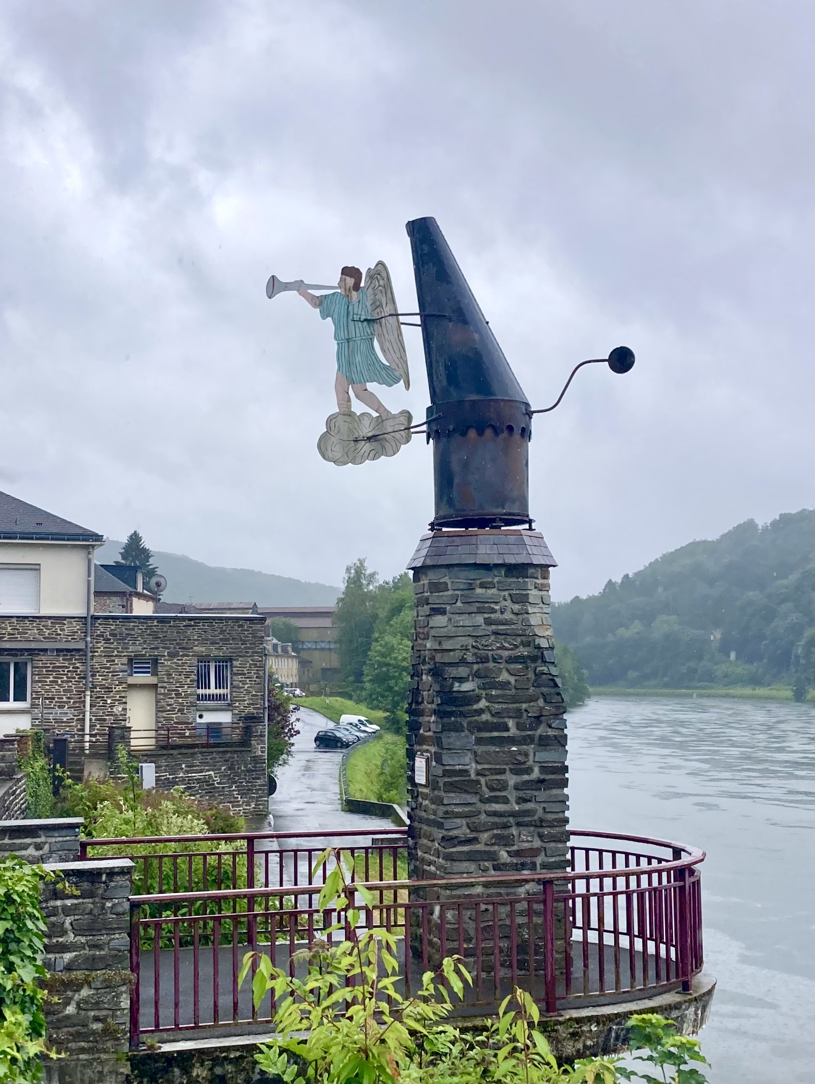 The photo gallery of our trip is less impressive, but quite interesting nonetheless. Own the left is a weather vane – the last remnant of a large brewery that stood on this spot beside the river. It was built around 1810 by M. and Mme. Hazard-Rousseau and was brewing for 150 years. Then, soon after it closed, it was demolished to allow the much needed widening of the road.