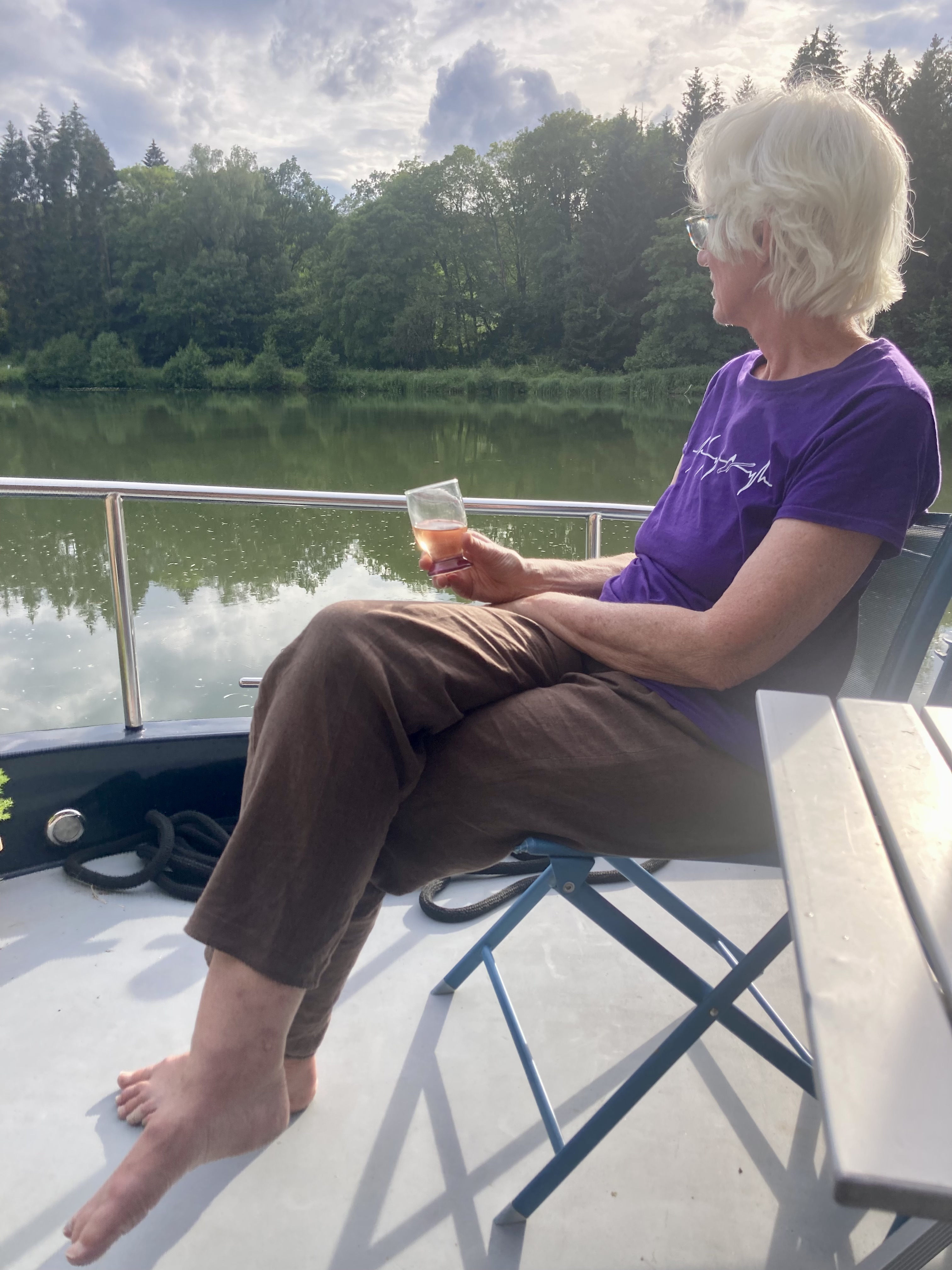 Then we settled into a nice afternoon and evening on our special mooring, right next to the passerelle (footbridge) across the river, so had plenty of people looking in!