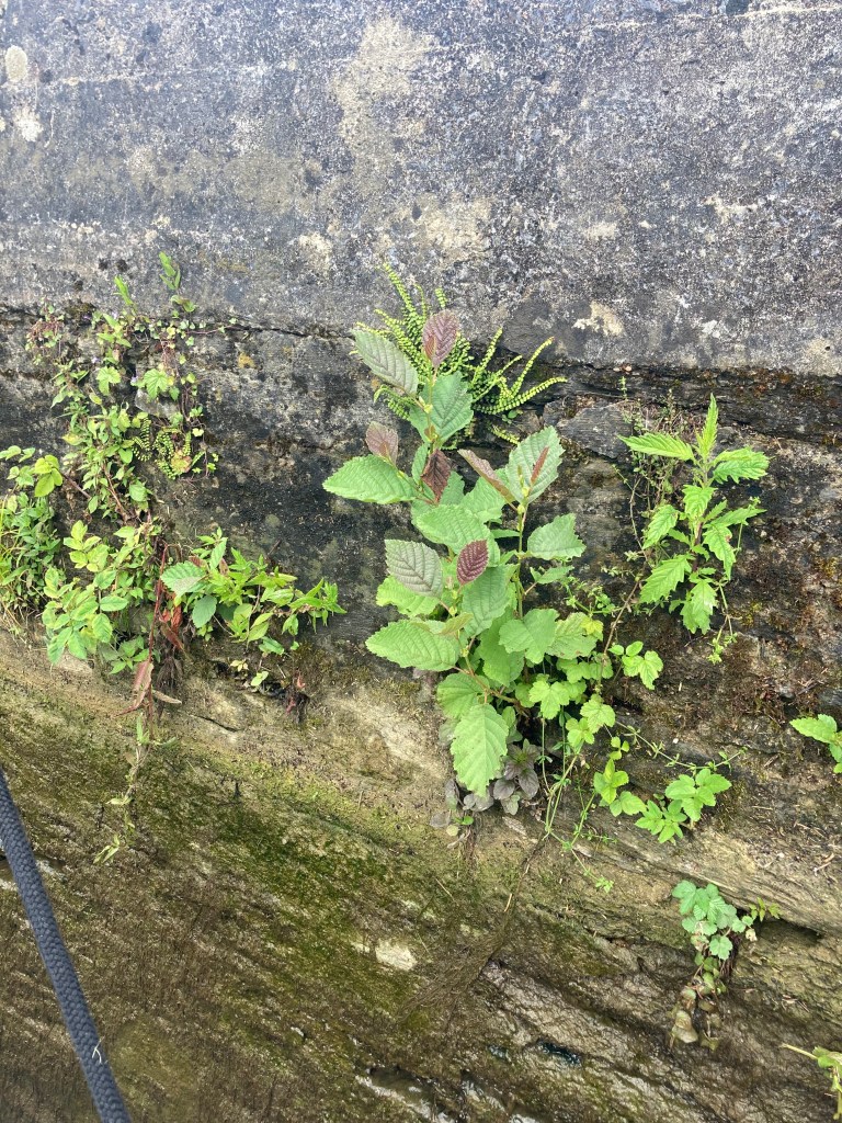 The old walls in the wonderfully named l’Uf lock (named after the tall rock beside it) played host to bright greenery, and a few flowers too.