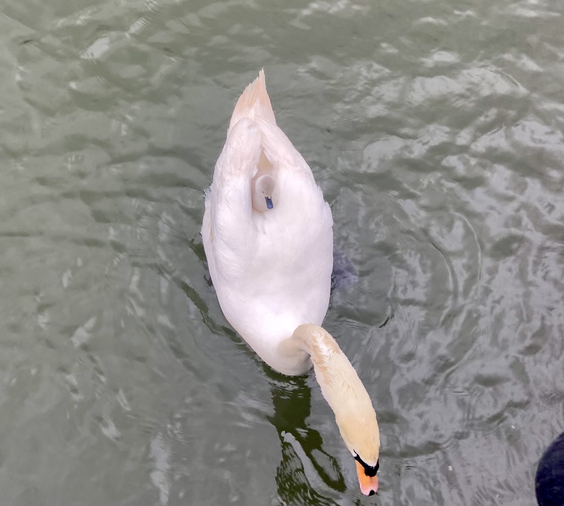 Firstly the local swan family turned up in a different formation. One or more cygnets were hitching lifts aboard mum/dad.