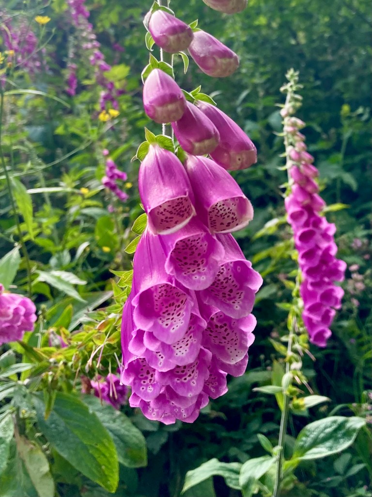 Half way up, or maybe less, we had a good view over the rooftops to Calliope. Then there were mass fox gloves, paths that didn’t exist, much going and froing and asking of locals for the way to the top.