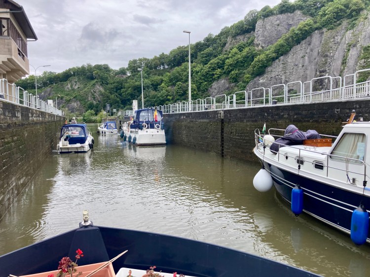 They had left Anseremme port together, to go downstream, and the éclusier made them all wait for us!