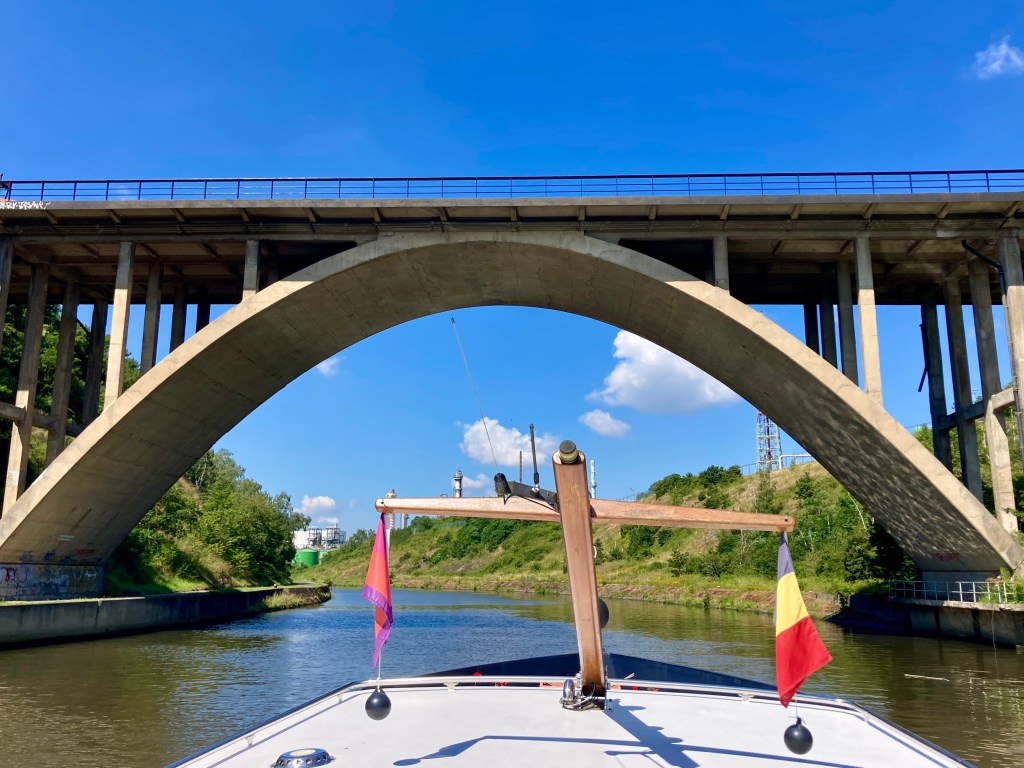 Then, through the slightly awkward Charleroi wiggle. You go under a bridge into a basin where we turn left (wiggle 1) and then immediately right (wiggle 2) to leave the basin.