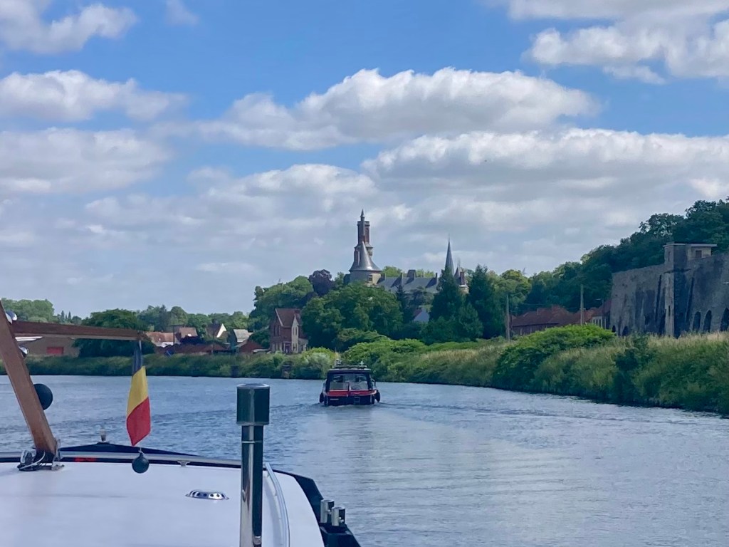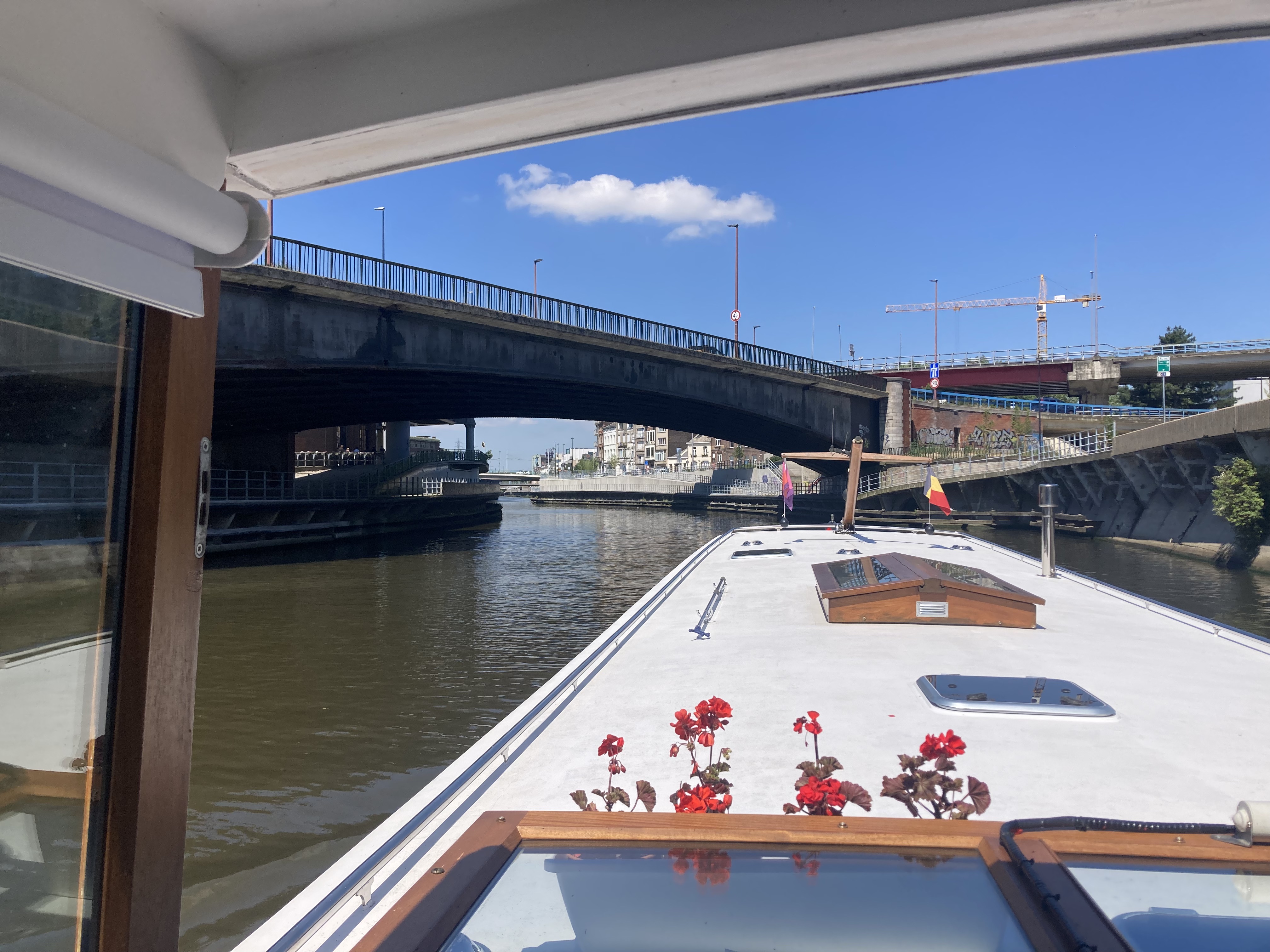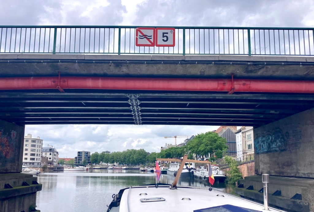 We reached the Ring Vaart (the waterway ring road of Gent) and things are suddenly much more urban. At the ‘cross roads’ Juno turned off and we continued straight on into the much smaller part of the Scheldt – the part that runs into the centre of Gent.