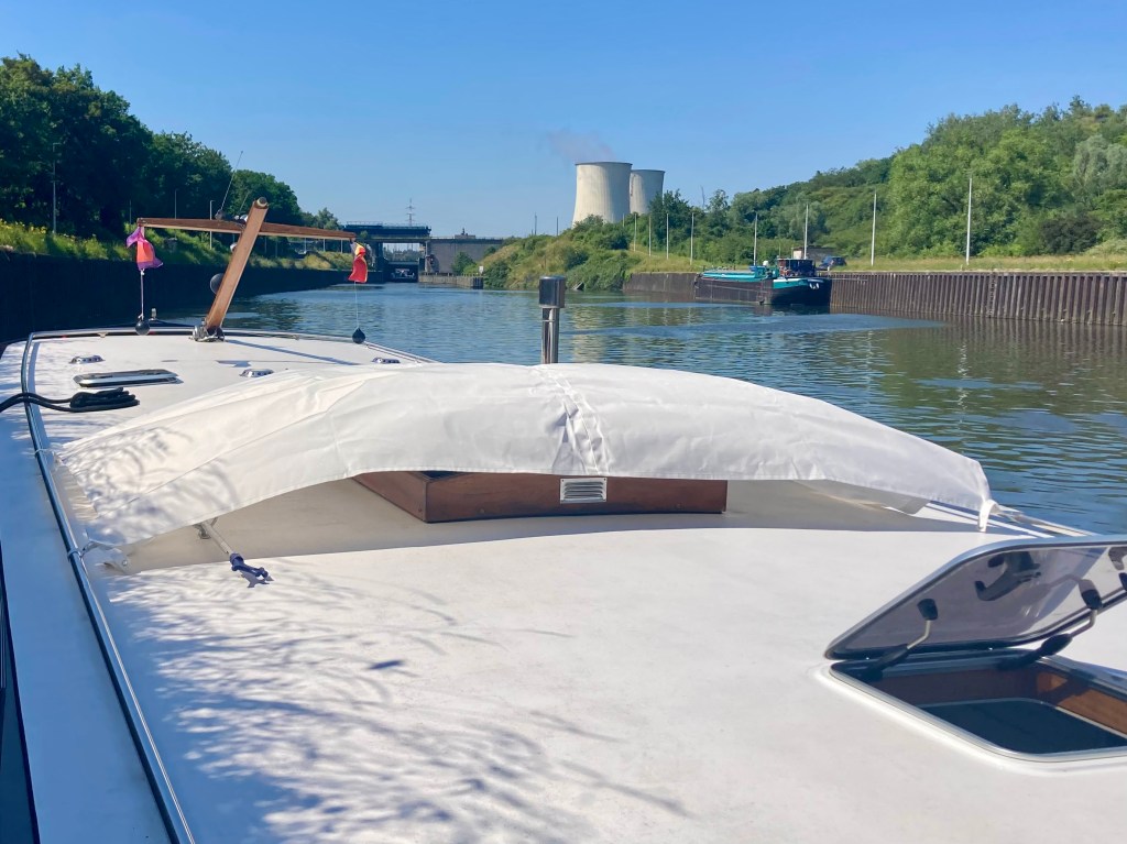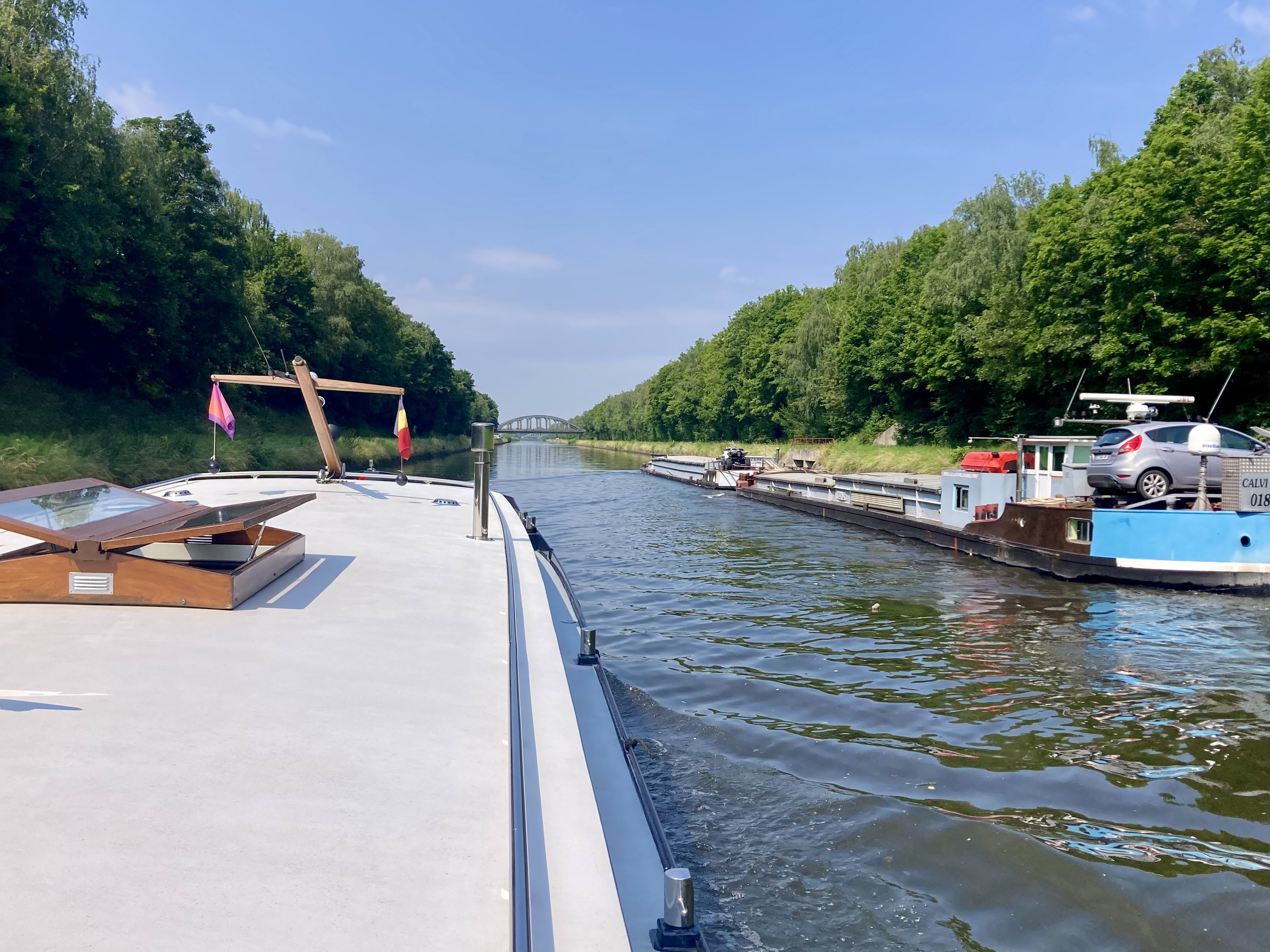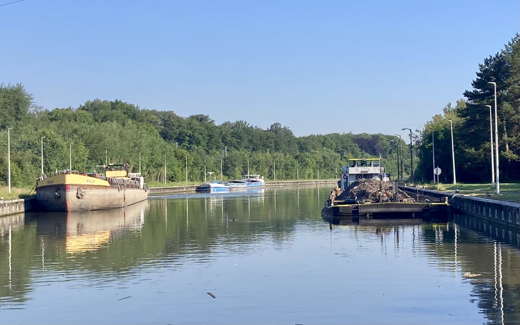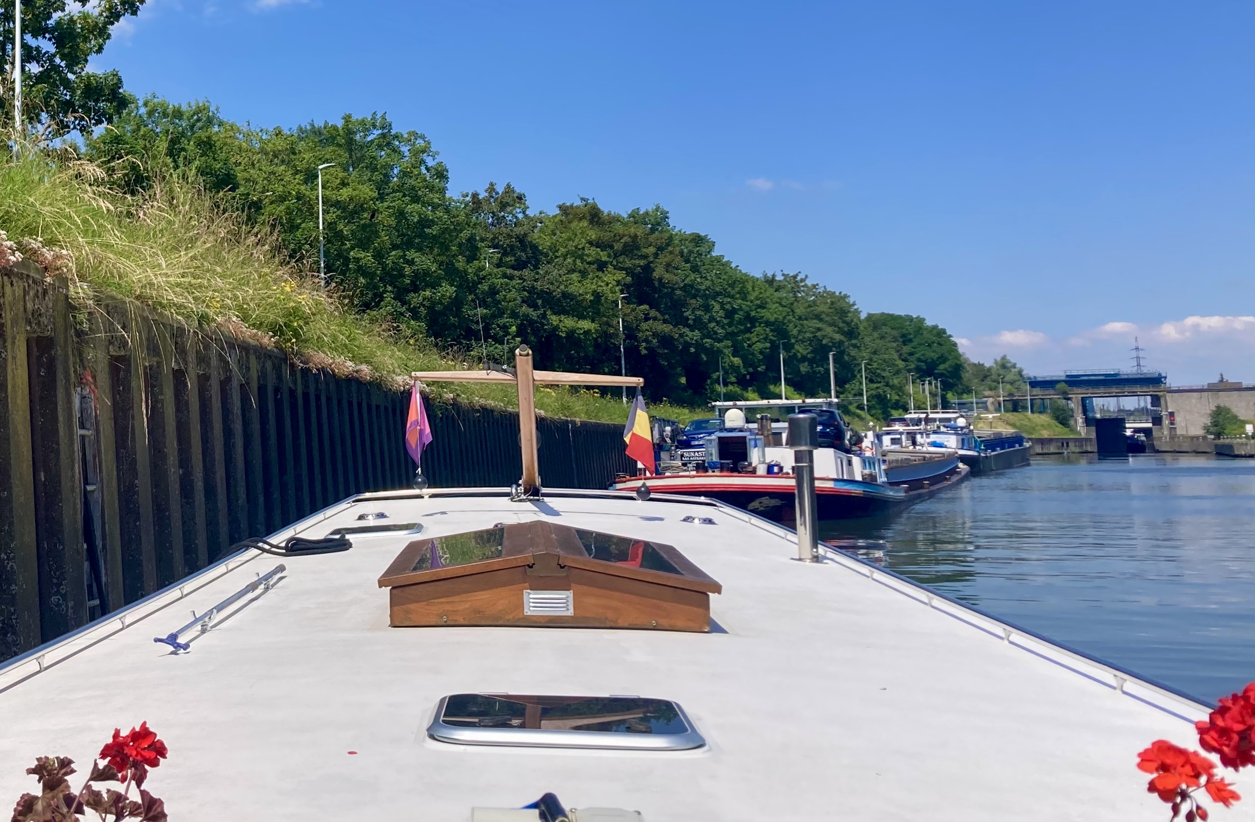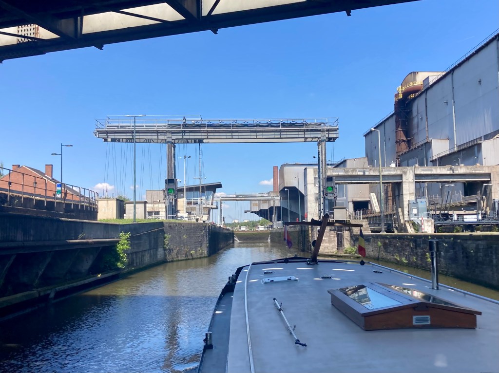 After this lock we planned to turn starboard into the Charleroi – Brussels Canal. It turned out that one of the locks a bit further up this canal required major work and had been closed for 3 days.