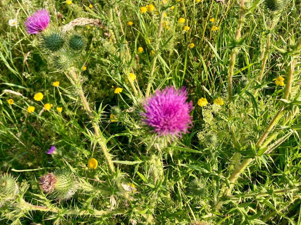 The walk also gave me a chance to photograph some of the wild flowers I had been noticing along the banks, and Calliope (in the distance) from across the water.