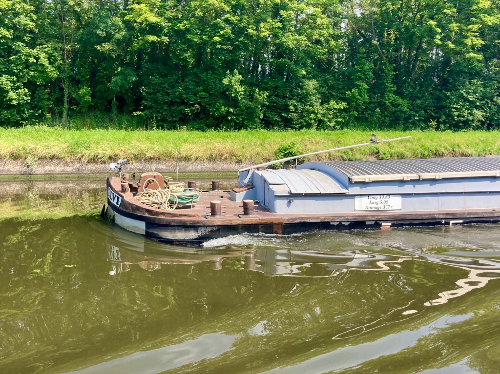 At the first we caught up with Calvi – a heavily loaded commercial barge – following her out onto the canal. We traveled a little slower than normal behind her for quite few kilometres…..