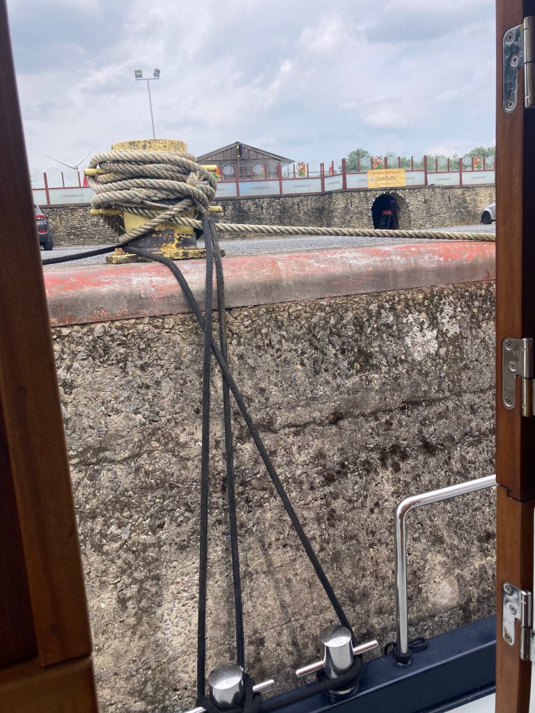 This was one of the locks where we move our ropes gradually down using the bollards in the wall.
